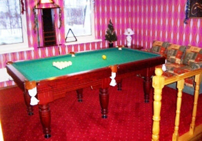 - 2 дом: 1 спальня, русская баня, теплый бассейн 8 х 5, зал 20 кв.м. бильярд, ТВ, ДВД, караоке;