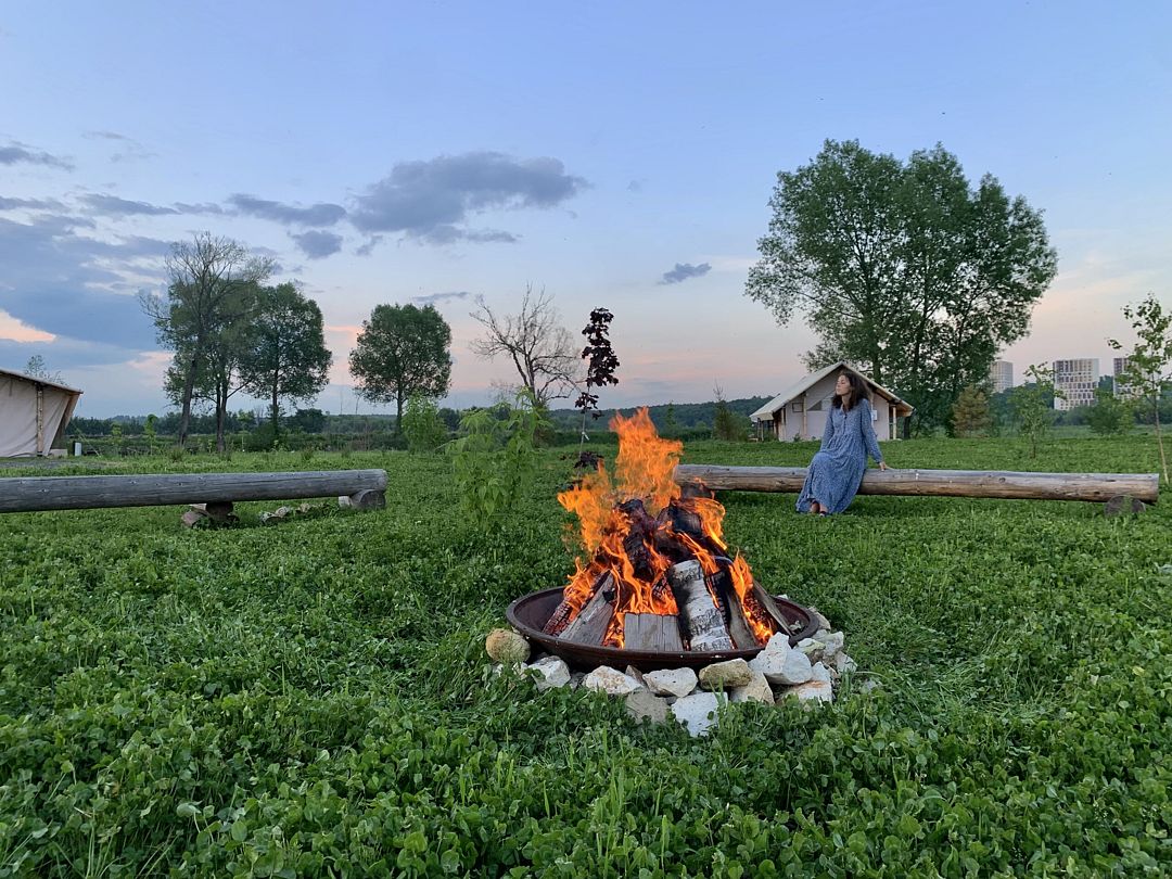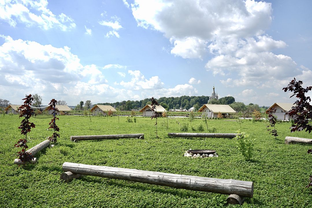 - Территория кемпинга для ваших палаток и кэмперов на берегу реки Москвы.