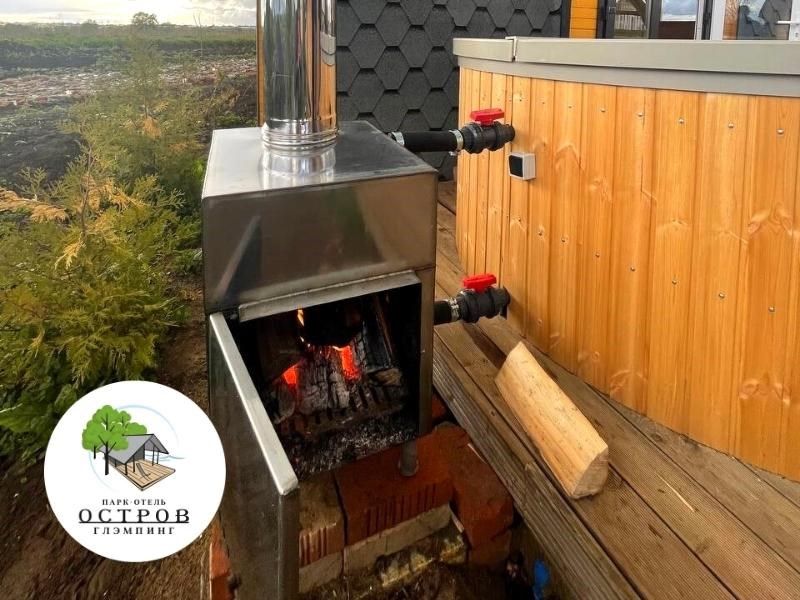 Между Бунгало и Баней установлен Чан, который отапливается с помощью дровяной печи.