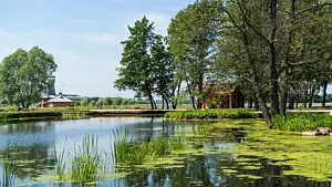 - Организовать мероприятие в пати-тенте или в бревенчатых беседках в древнерусском стиле вокруг «Графского» пруда с Царской рыбалкой.
