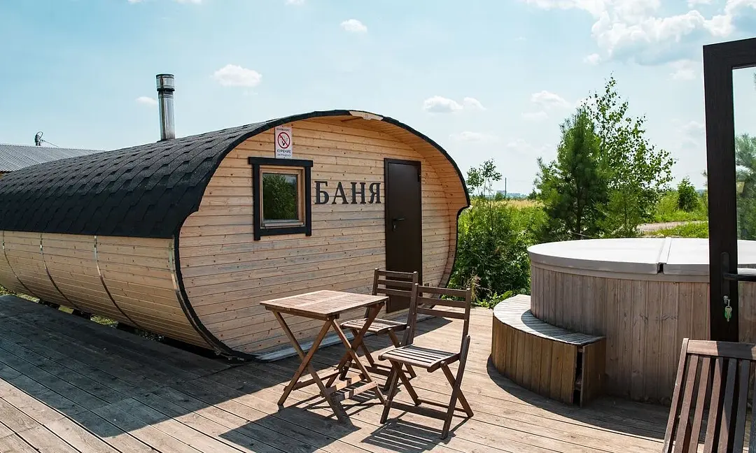 Бунгало на берегу реки с баней и купелью — идеальный отдых с комфортом.