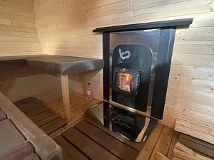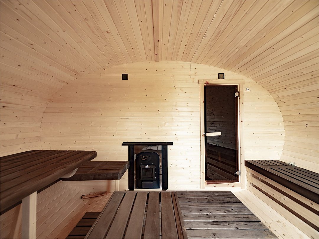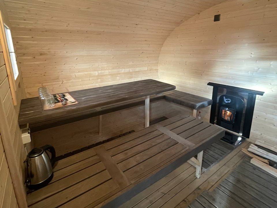 Баня состоит из парной и гостиной зоны, санузла и душевой кабины. В наличии электрический чайник, комплект банных полотенец. На улице установлена купель с дровяной печкой, стол с лавками и стационарным мангалом с крышей, которые включены в аренду. собственная парковка для автомобиля.