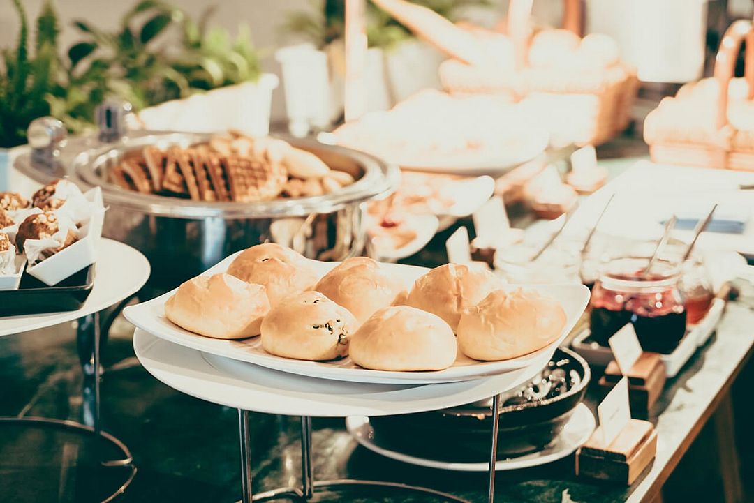 - Завтрак с 9:00 до 11:00 — вкусный старт дня с разнообразным меню (горячие блюда, свежая выпечка, напитки).