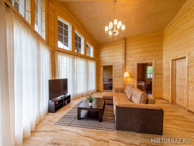 - В доме две спальни с кроватями kingsize, просторная гостиная, кухня, два санузла с душевой кабиной и гидромассажной ванной.