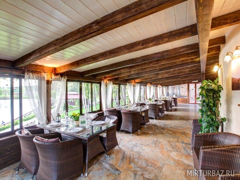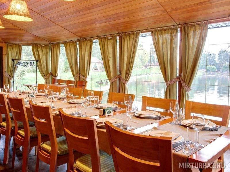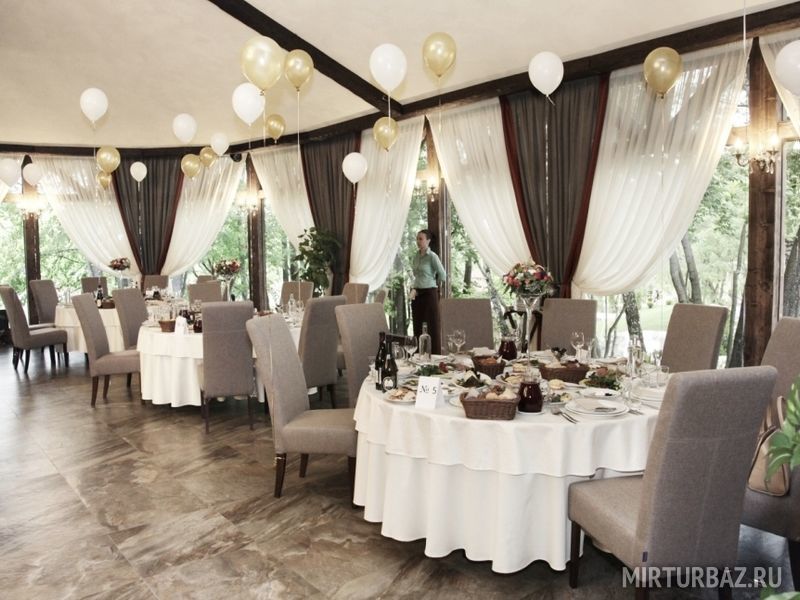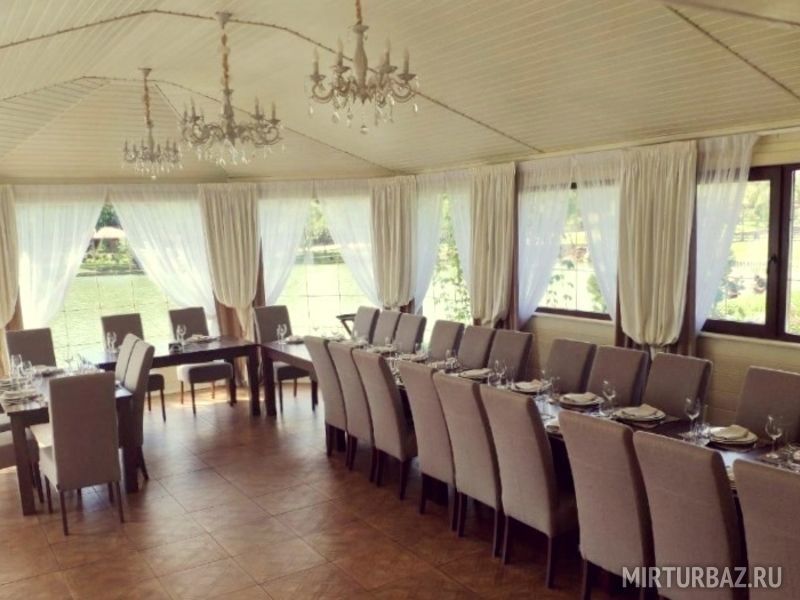 Отличное решение для небольшой свадьбы или другого торжества. Удачное расположение беседок у пруда и панорамное остекление создает естественные декорации, где главный элемент это природа.