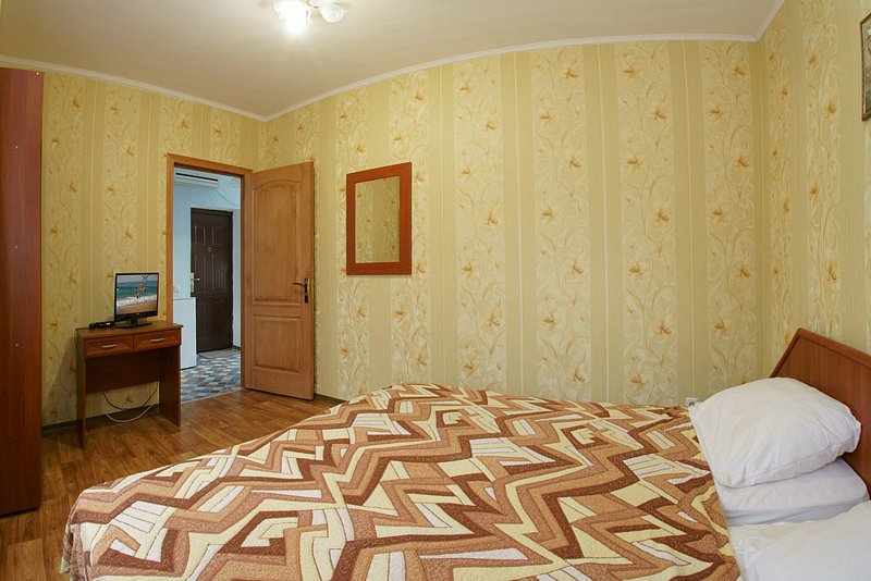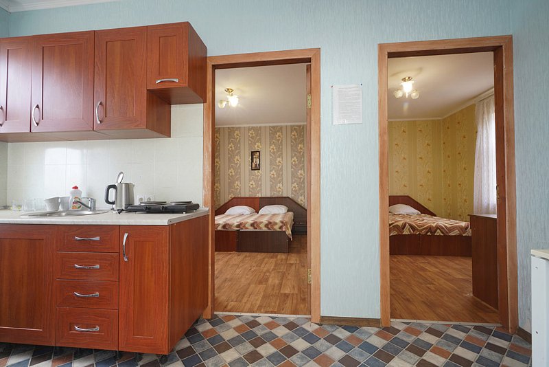 Коттедж с двумя изолированными комнатами для проживания от 2–6 человек. Коттедж оборудован удобной мебелью, современной техникой, кондиционером, санузлом, кухней, холодильником, имеет веранду.