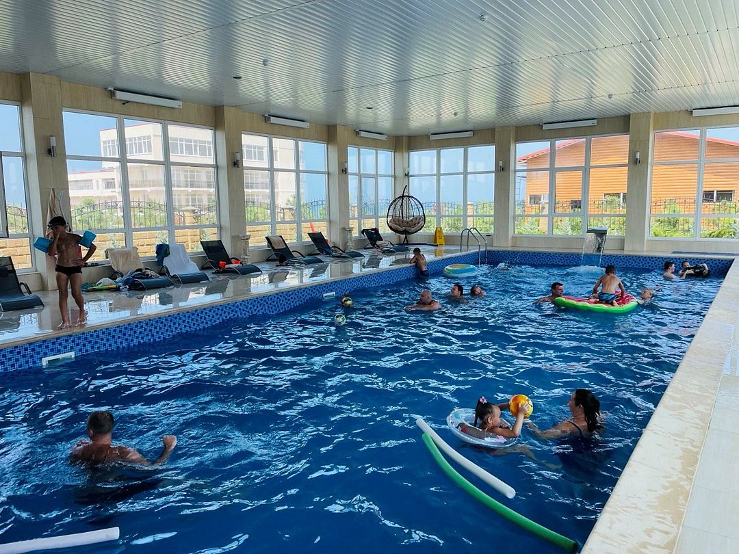 Вне зависимости от погоды, посетители отеля могут насладиться плаванием в закрытом бассейне. Каждый день в бассейне проводится специальная программа здоровья, включающая двухразовые упражнения в воде.