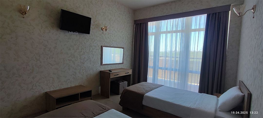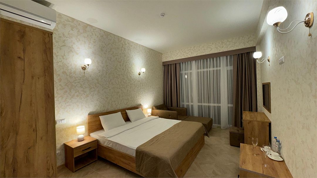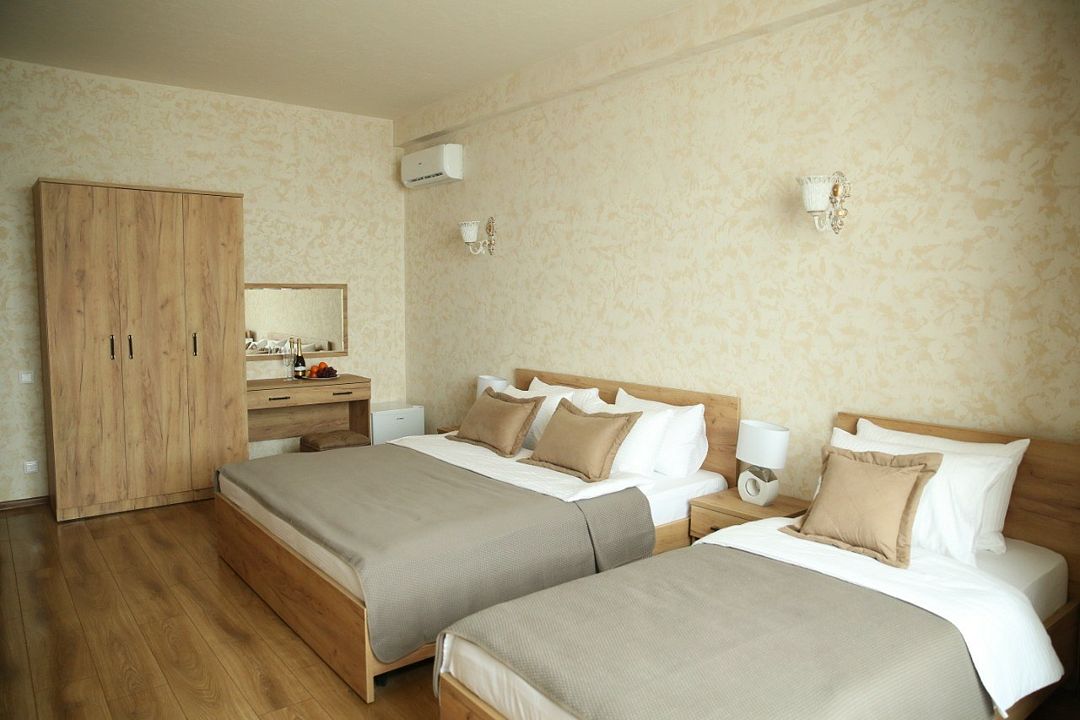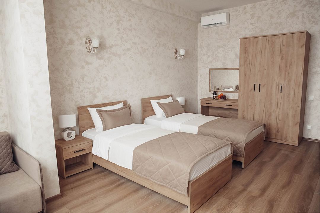 Wi-Fi, кондиционер, фен, утюг, ванна или душевая кабина, теплый пол, банные принадлежности, халаты, банные полотенца, пляжные полотенца, тапочки, две односпальные кровати, гладильная доска, шкаф для одежды, вешалки, журнальный столик, зеркало, чайный набор, сейф, минеральная вода, чайник, унитаз, раковина, косметическое зеркало, вид на море, кулер на этаже, вид во двор, ламинат, высокие потолки, стаканы, туалетный столик, туалетные средства, вид на парк, мини-холодильник, москитная сетка, телевизор со Smart TV, теплые полы, номер для некурящих, пуфик, два раскладных кресла, уборка номера, услуги прачечной (платно), вешалки-плечики, приветственная фруктовая тарелка в номер, мини-бар (платно), шапочка для душа, частный двор, мыло, можно с питомцамиВ гостиничном номере