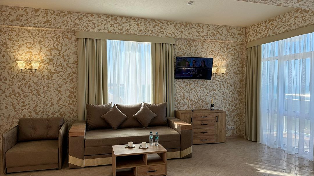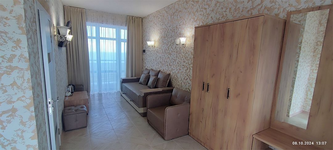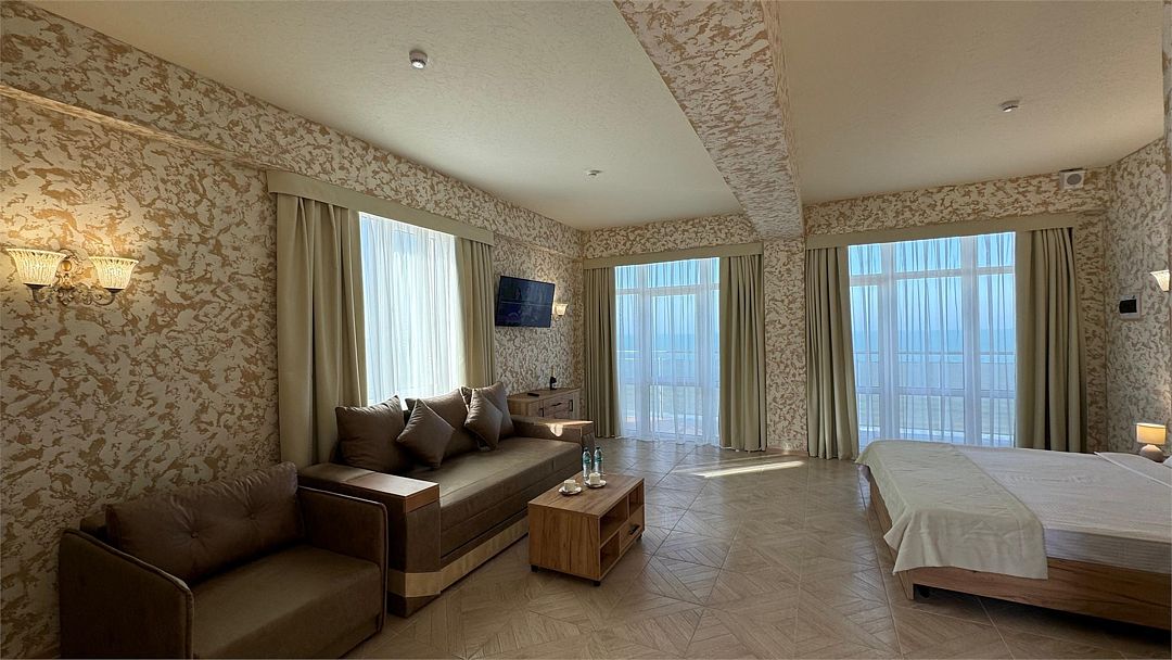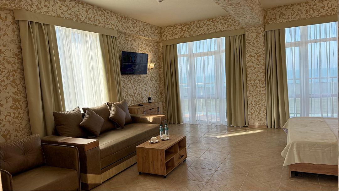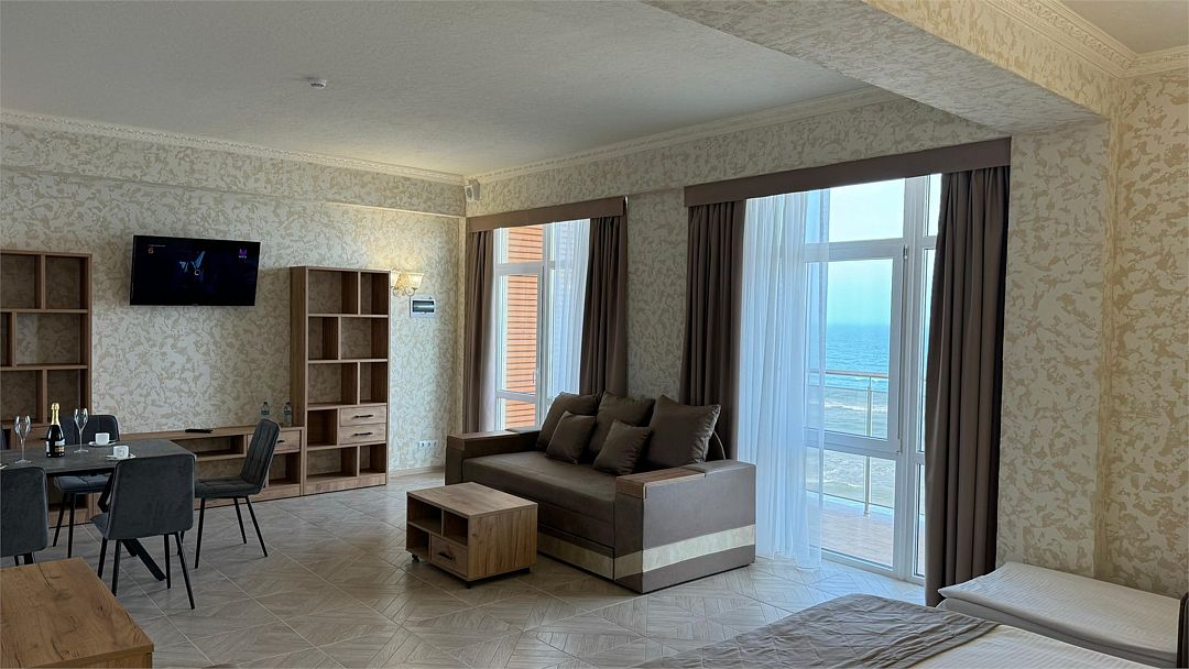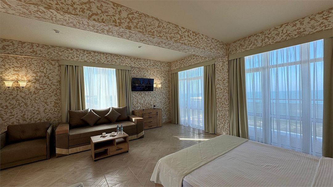Большой просторный номер с панорамными окнами с видом на море!Услуги и удобства