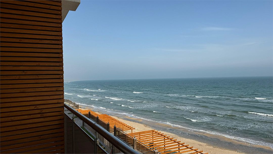 Всего в 2 минутах ходьбы — широкий песчаный пляж, оборудованный бунгало, зонтами, шезлонгами. На пляже работает надувной аквапарк с бассейном для детей и бар для гостей отеля