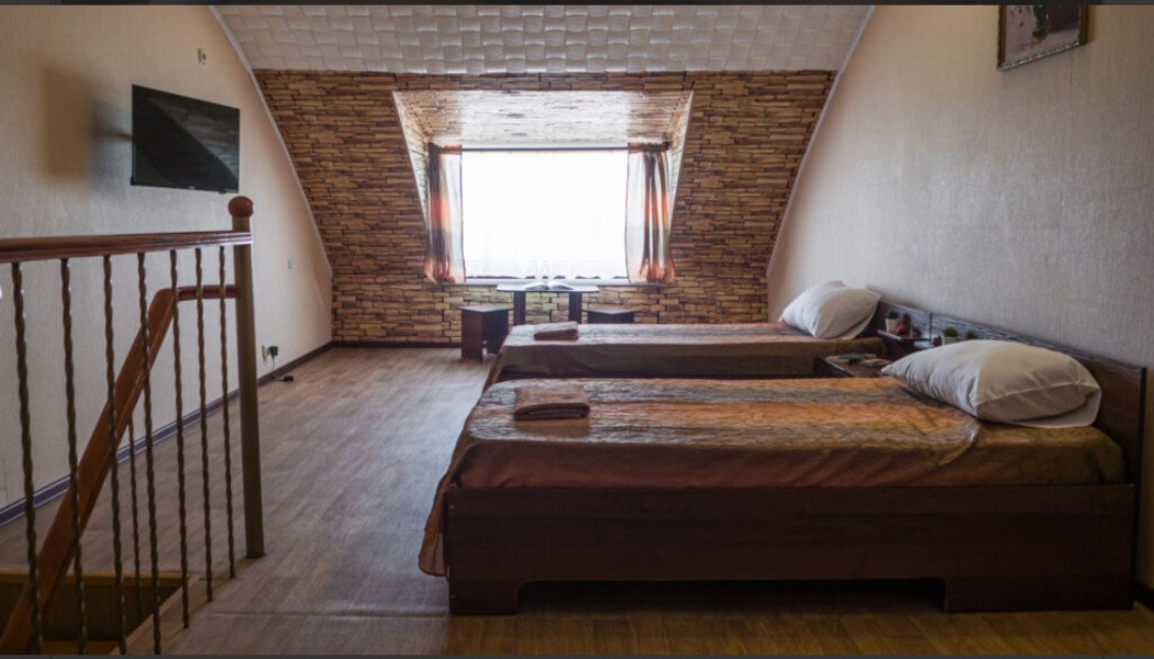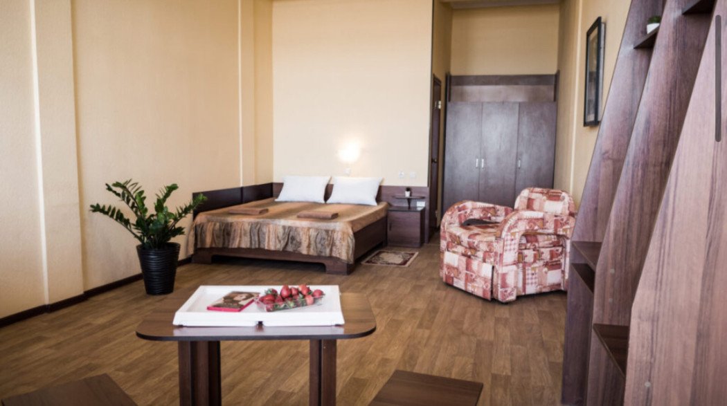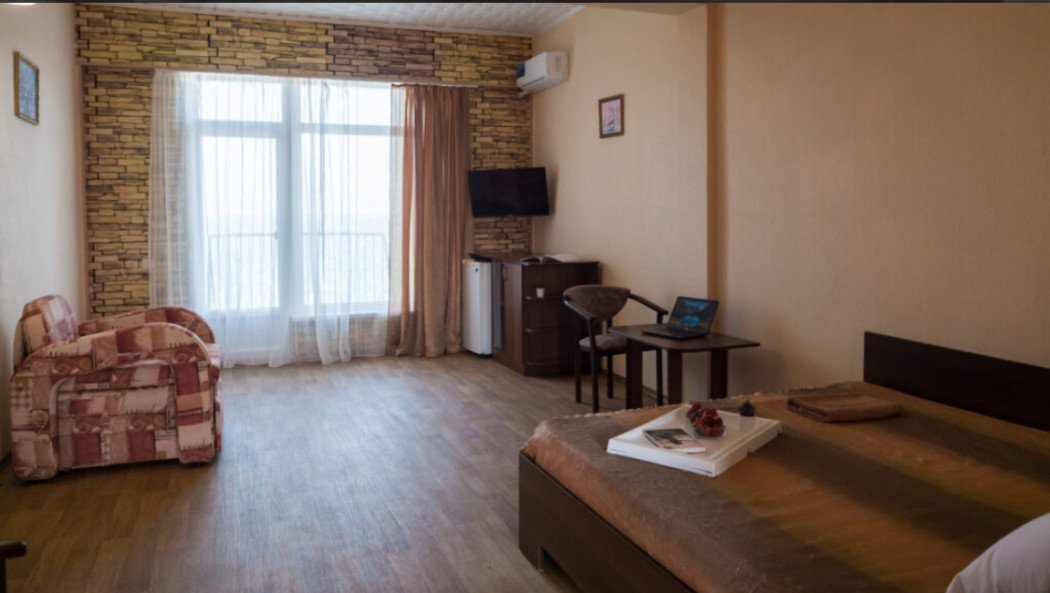 июнь 2021 г.Приличное местоОтдыхали с друзьями неделю в пансионате, остались довольны. Разместились в двухъярусном номере Люкс+, друзья с внучкой на первом этаже, там есть двухспальная кровать и кресло кровать, которое подходит для ребенка, мы с мужем жили на втором этаже - там две двухспальные кровати.На каждом этаже телевизор, кондиционер. На первом этаже также холодильник, сейф, чайник, посуда. санузел один, что создавало, конечно, определенны неудобства, но не критично. Все номера с видом на море, на балконе есть мебель, растянуты веревки для сушки белья. В пансионате есть стиральные машины ( их три), которыми можно пользоваться в любое время, очень удобно. Предоставляются пляжные полотенца. В номере уборка каждый день, уборка качественная. Смена полотенец на 4 сутки, постельного белья на 5. Белье уютное, белоснежное. Питание достойное, готовят под заказ к определенному времени, без особых изысков и разнообразия на ужин ( обед не брали), но достаточно вкусно, все свежее, желудки не болели.