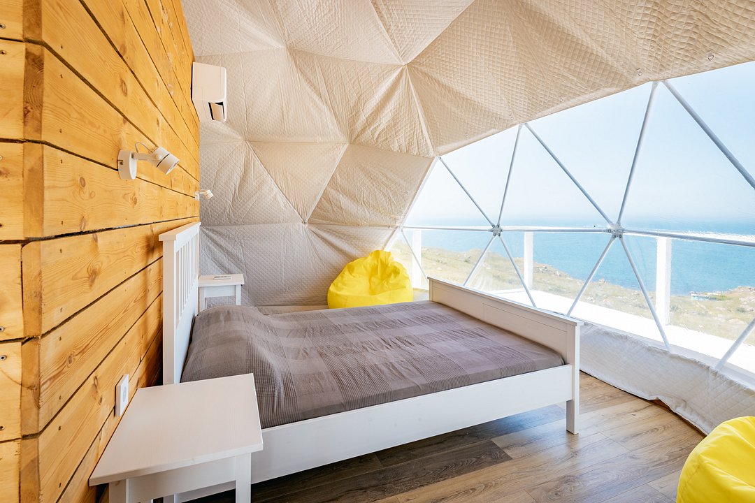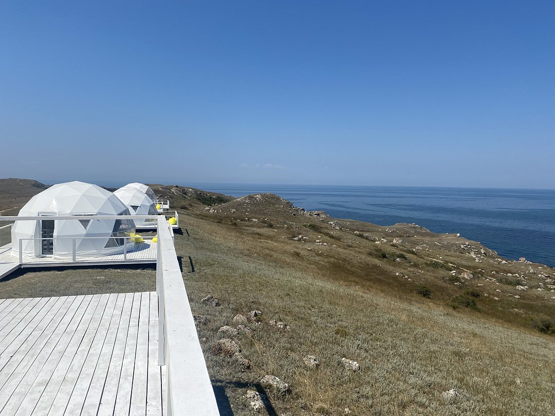 Путешествие с парой❤️❤️❤️❤️❤️Заповедный мыс! Ставлю тебе высшую оценку! Мы с мужем часто путешествуем, много где бывали. Но были очень удивлены, что в Крыму есть уединенные места и при этом комфорт и эстетика. В глэмпинге есть все, что необходимо для романтичного отдыха. Восходы и закаты, теплое (даже в конце сентября) и чистое море с песчаным пляжем. Тишина, шум волн. Продумано все, вам не о чем беспокоиться. В номере белая мебель, белоснежная постель и полотенца, средства гигиены, всегда есть горячая вода. Такое необычное сочетание отдыха на природе (кто любит палатки) и, в то же время, живёшь в VIP комфорте, шикарный просторный купол со всеми удобствами. Очень рекомендую!!!