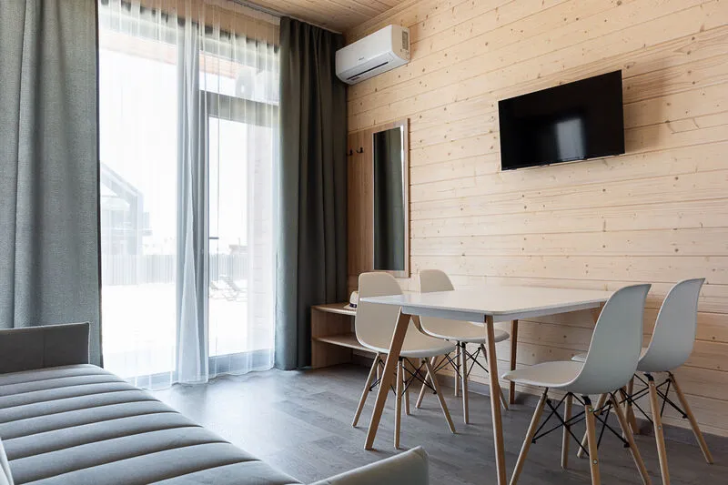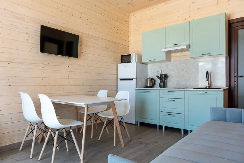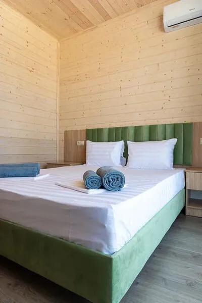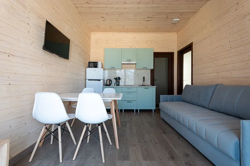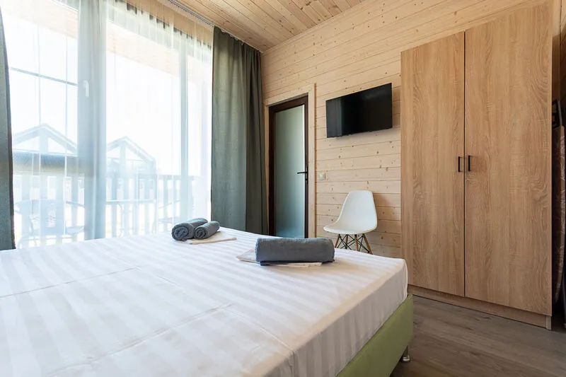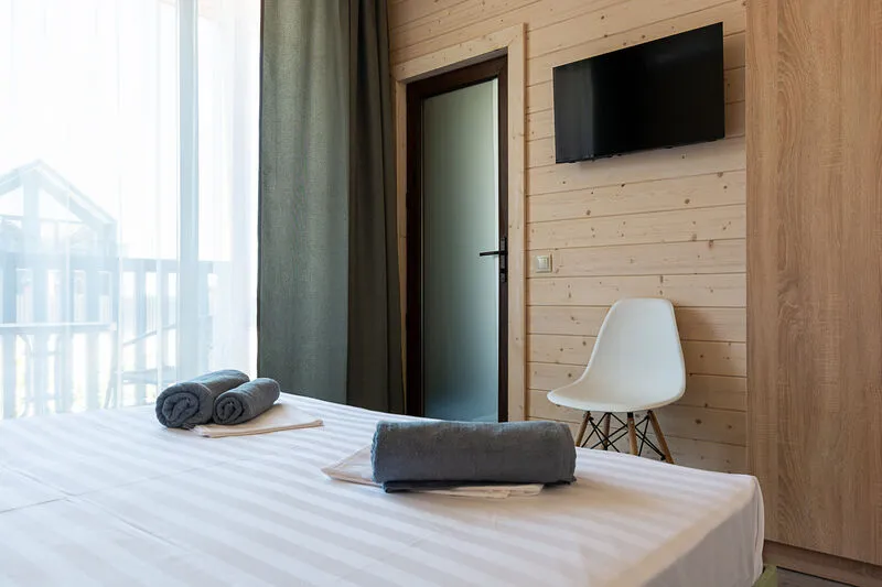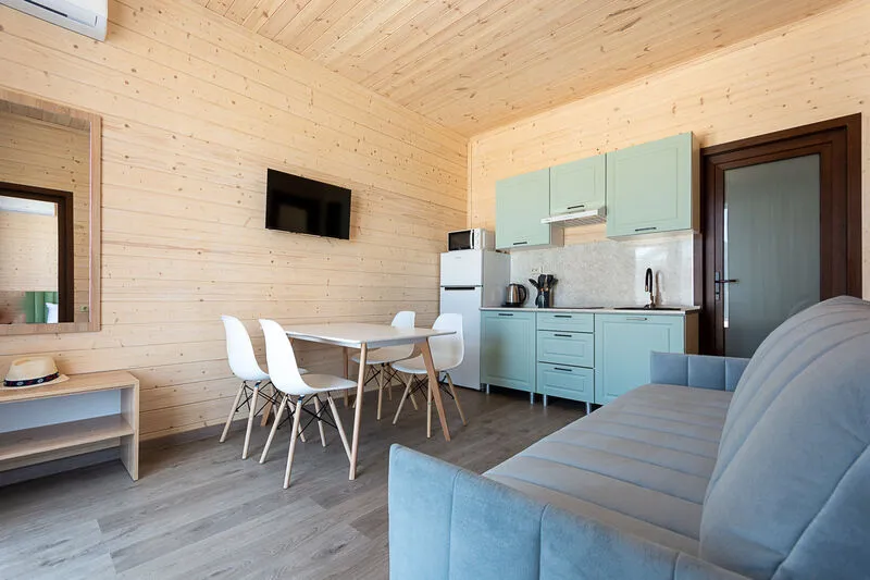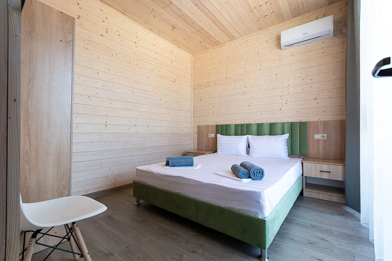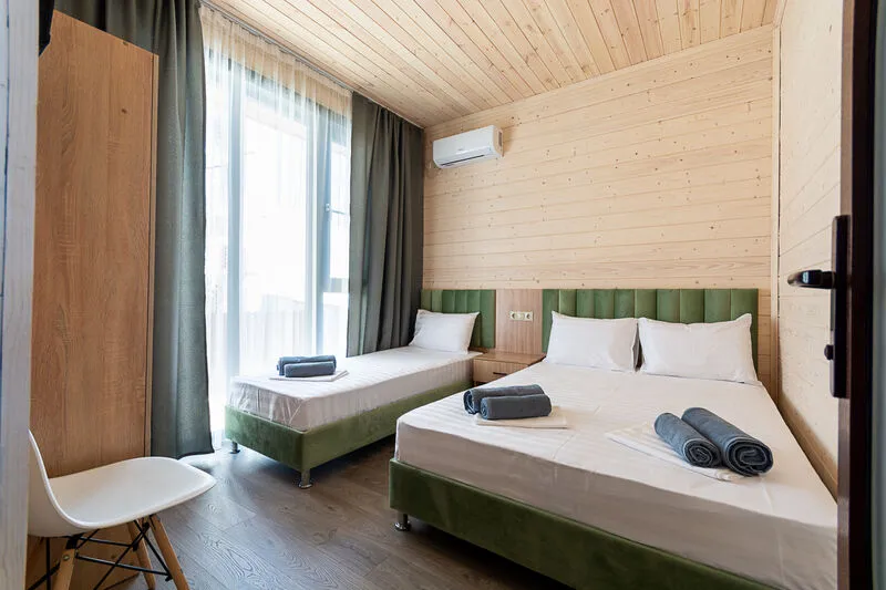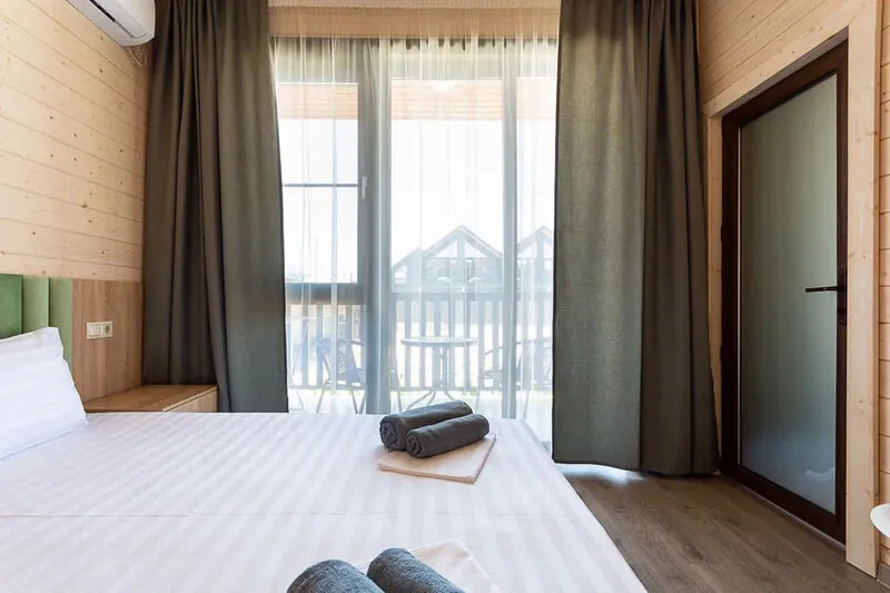 Для размещения отдыхающим предлагаются апартаменты вместимостью до 6 человек в отдельно стоящих двухэтажных коттеджах с видом на бассейн. Каждый коттедж включает комфортабельные номера на первом и втором этажах. Все номера имеют свой отдельный вход и балкон.