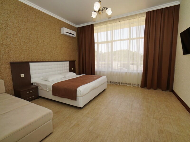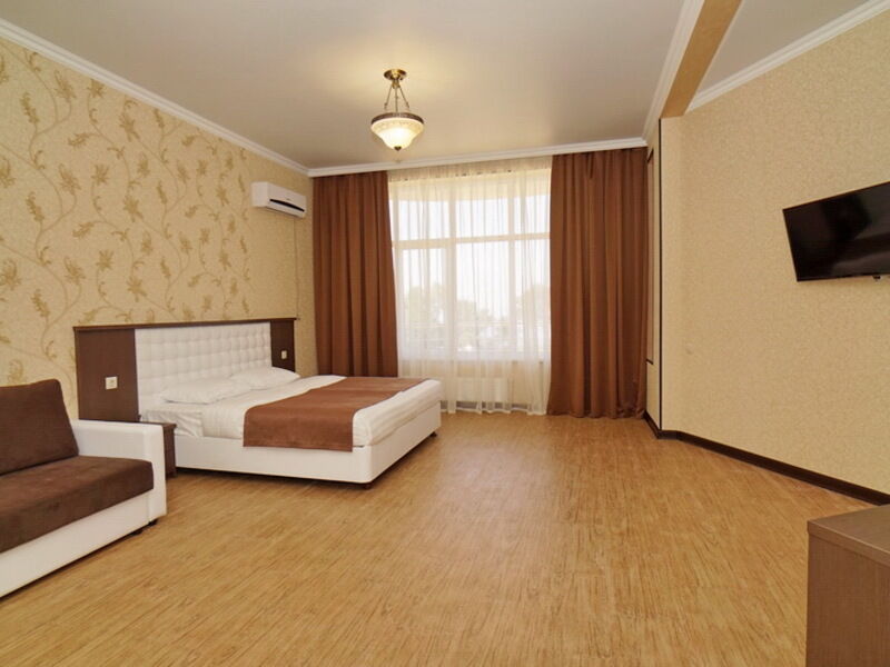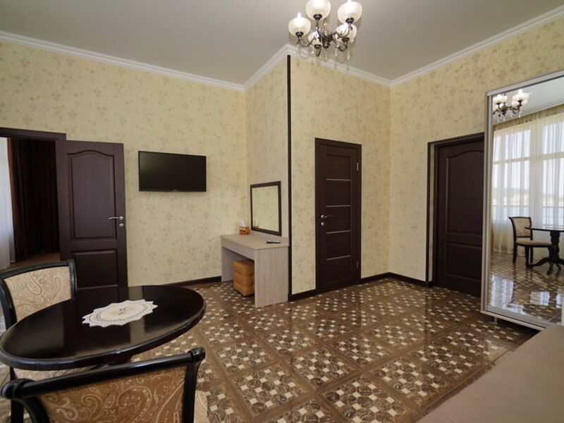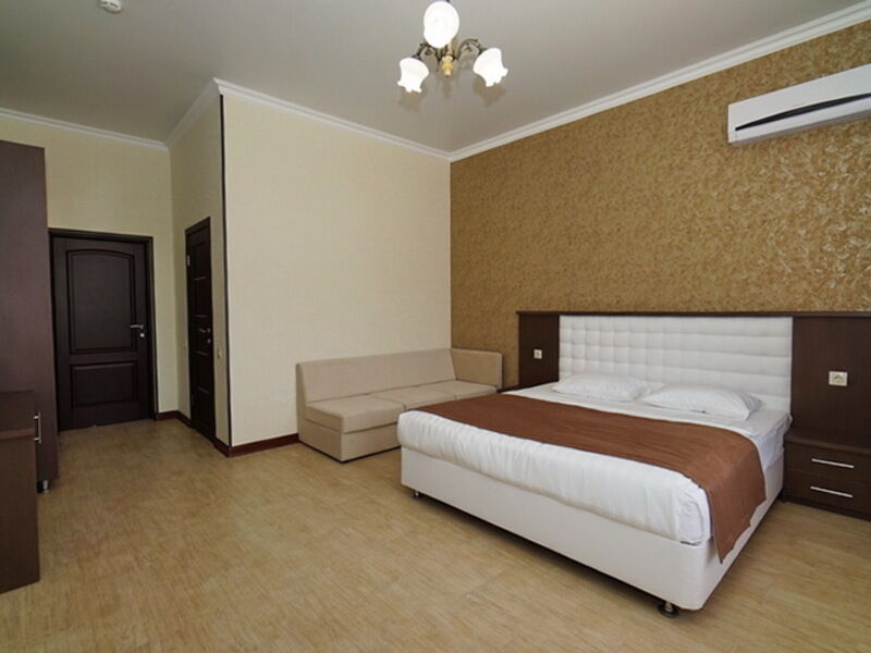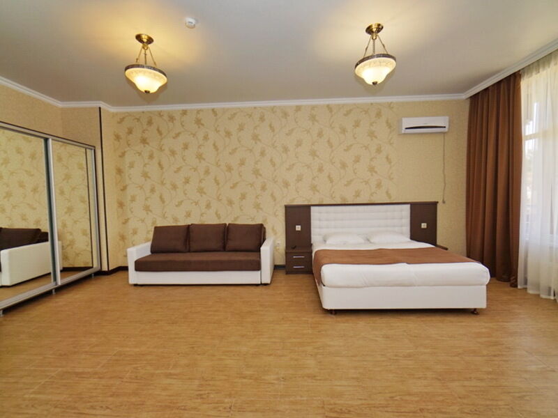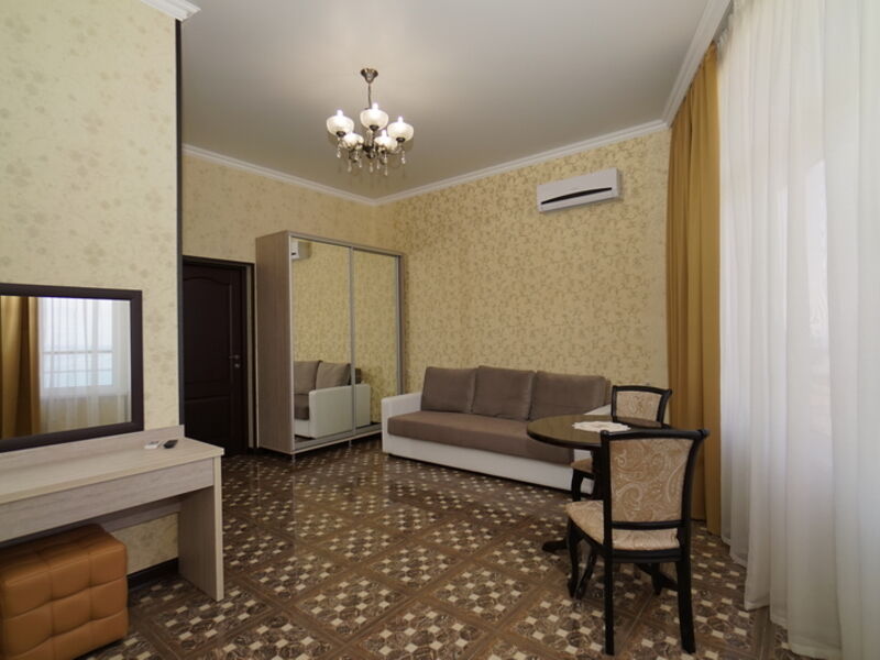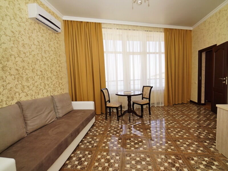 Номер категории «Люкс» оборудован балконом, на котором можно любоваться окружающей природой и дышать морским воздухом. В зависимости от расположения, в номере может быть как один, так и два санузла с современной сантехникой.