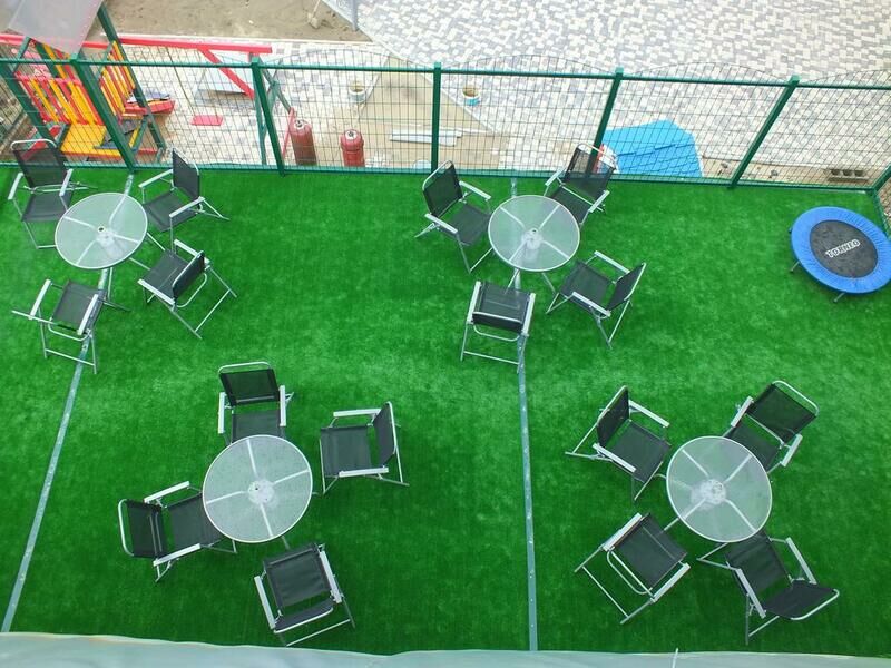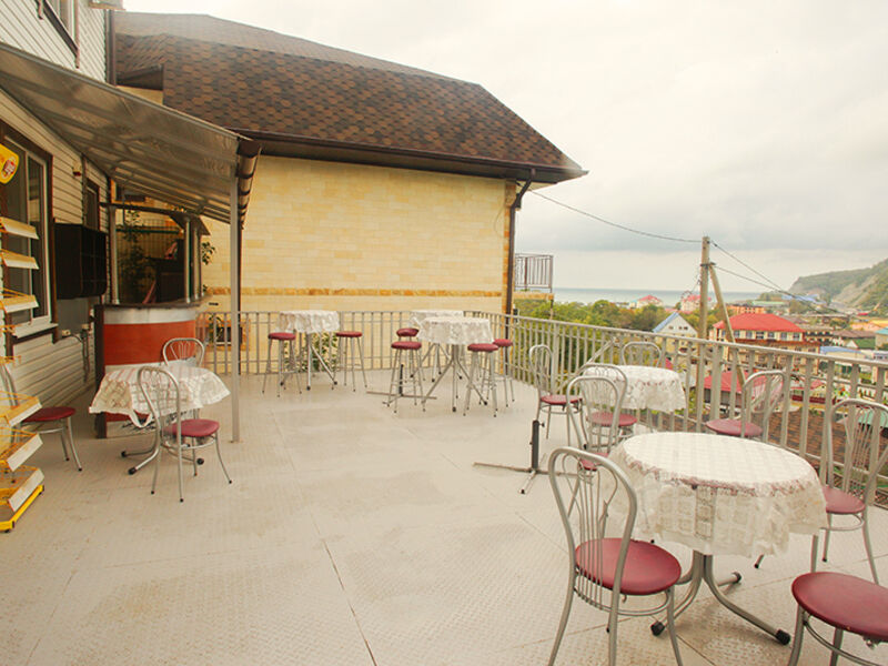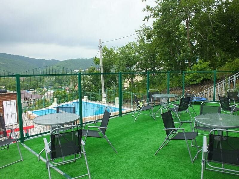 На благоустроенной огороженной территории расположен открытый подогреваемый бассейн с зоной отдыха, сауна, кафе, обеденный зал и беседки.