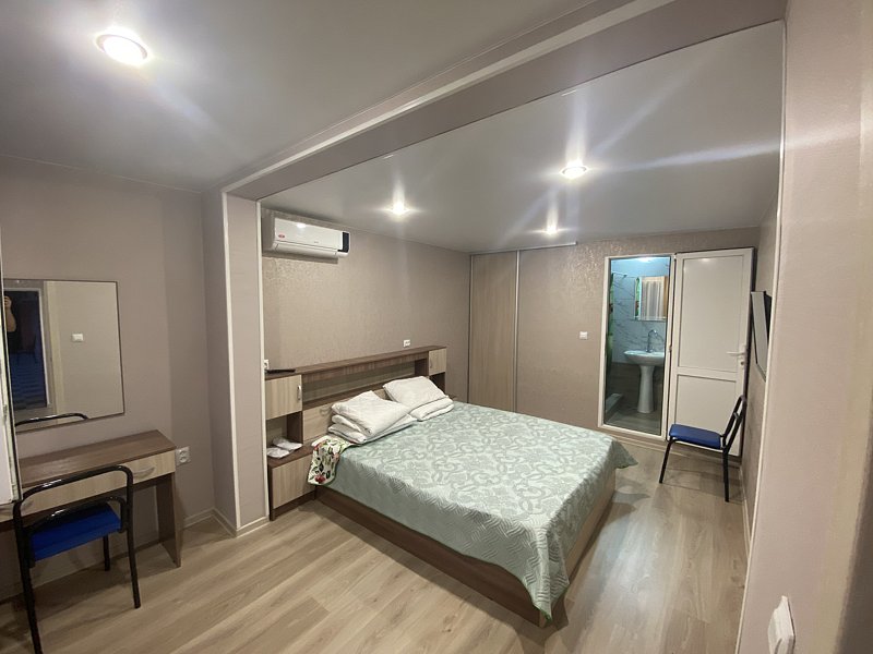 Номера комфорт состоят из двух спален и кухни. Каждая спальня имеет телевизор, кондиционером, совмещенный санузел с душем. В одной спальне двухспальная кровать в другой раздельные. Кухня – холодильник, микроволновка, электрочайник, мультиварка, посуда для еды и приготовления пищи.