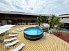 В каждом номере: двуспальная или двуспальная и односпальная кровати, тумба, стол, шкаф, сплит-система, ТВ, холодильник, собственная ванная комната с душем и санузлом, корпус оснащен собственными террасами с садовой мебелью, объединенными на два номера, что удобно при размещении компании из 4-х человек.
