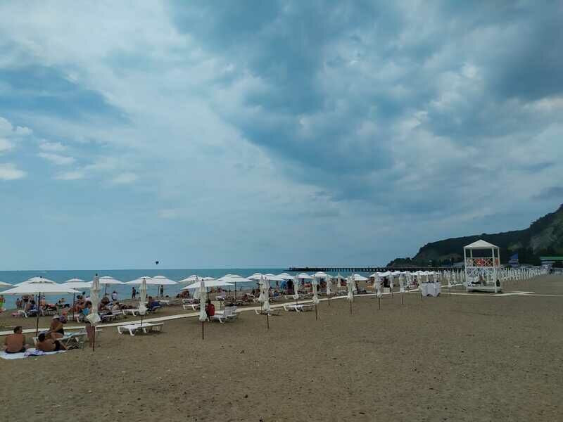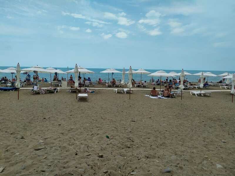 Песчаный пляж на берегу Черного моря расположен в 100 метрах от базы.