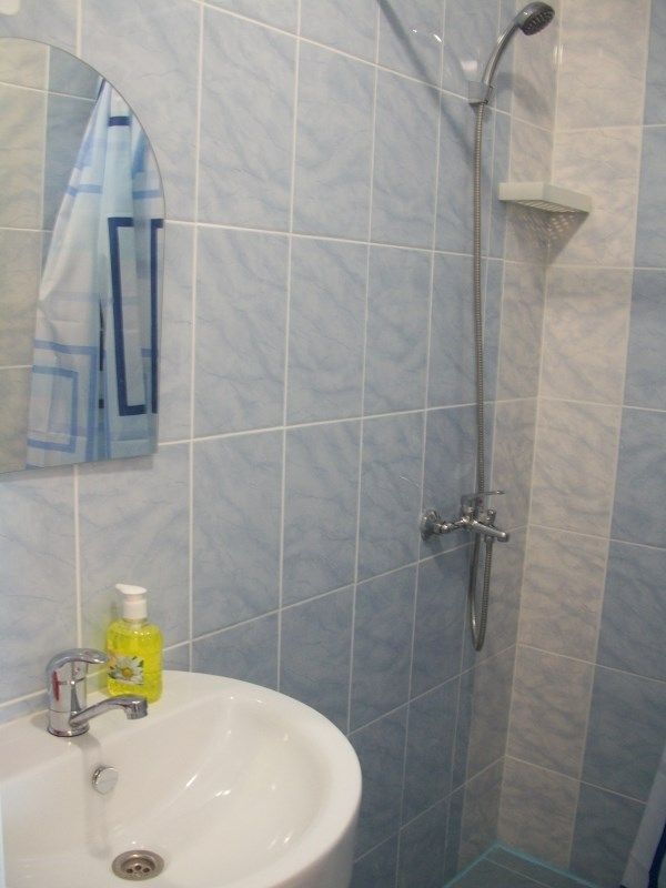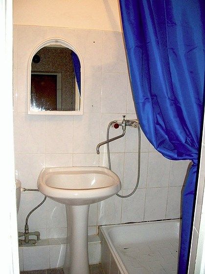 Совмещенный санузел — ванна, раковина, туалет. В комплектацию номера входит комплект белья, полотенец, сервисные принадлежности.