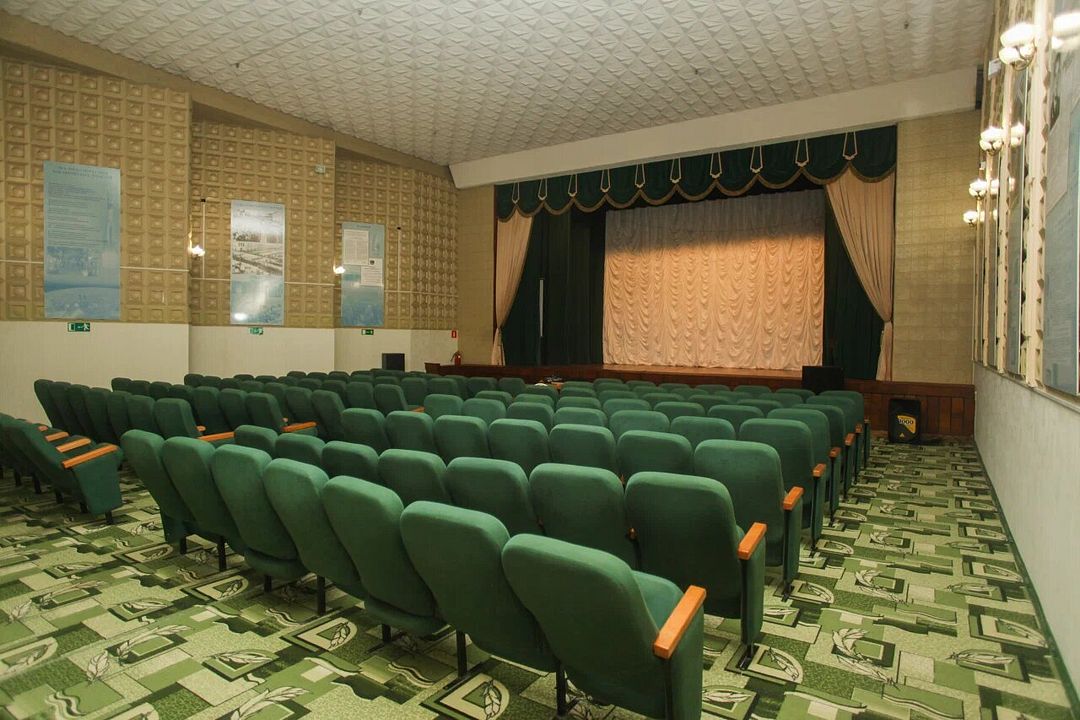 Уютный киноконцертный зал на двести мест, оформленный в спокойных зеленых и золотистых оттенках. Это идеальное пространство для приятного времяпровождения и наслаждения культурными мероприятиями.