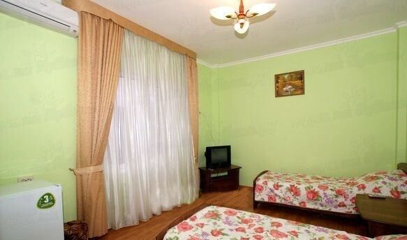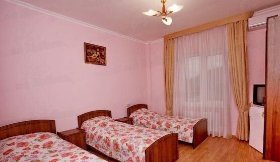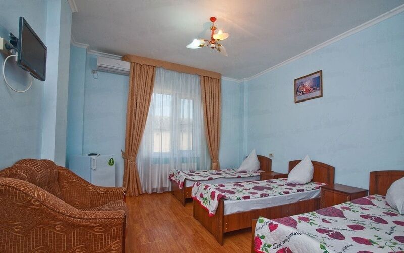 В номере: три односпальные кровати, сплит-система, шкаф/гардероб, рабочий стол, тумбочки, пуфики, телевизор, холодильник, душ, туалет.