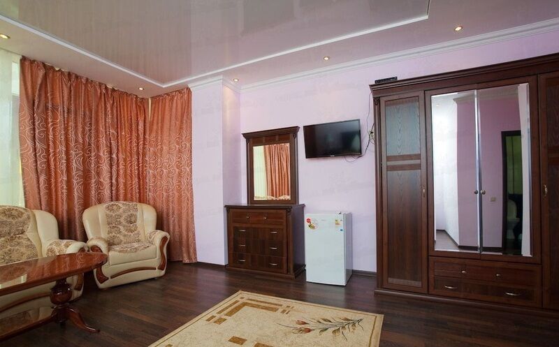 В номере: одна двуспальная или две односпальные кровати, сплит-система, шкаф/гардероб, рабочий стол, тумбочки, пуфики, телевизор, холодильник, душ, туалет.