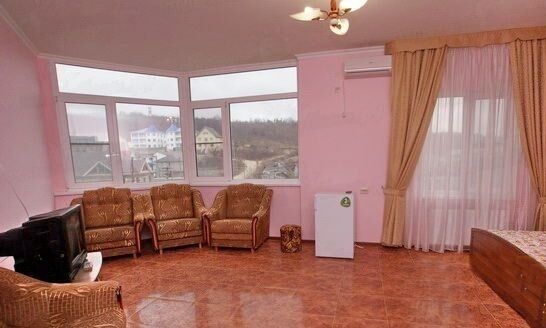 Это уютный двухкомнатный номер со всеми удобствами. Рассчитан на двоих-пятерых.