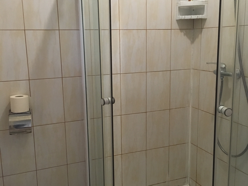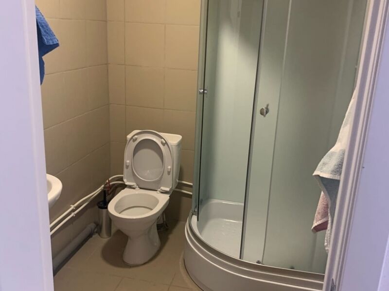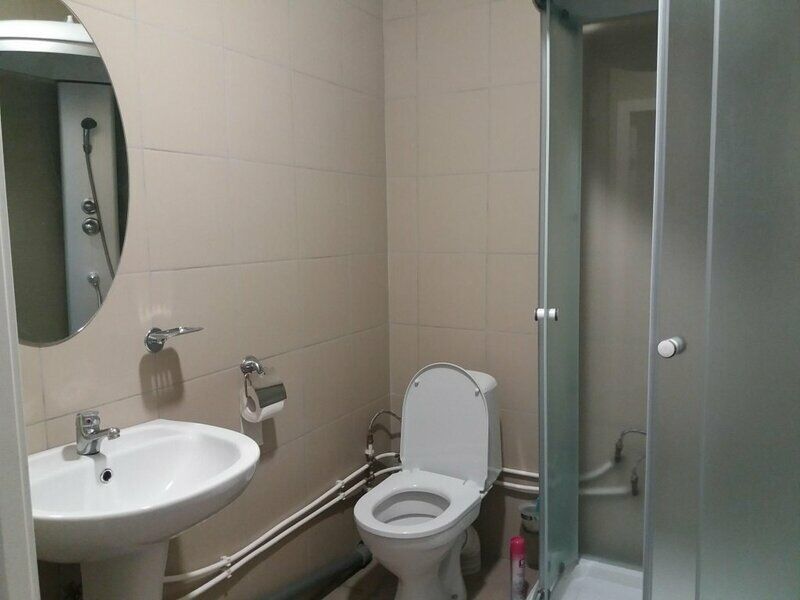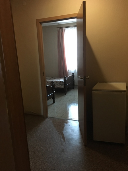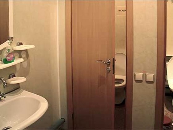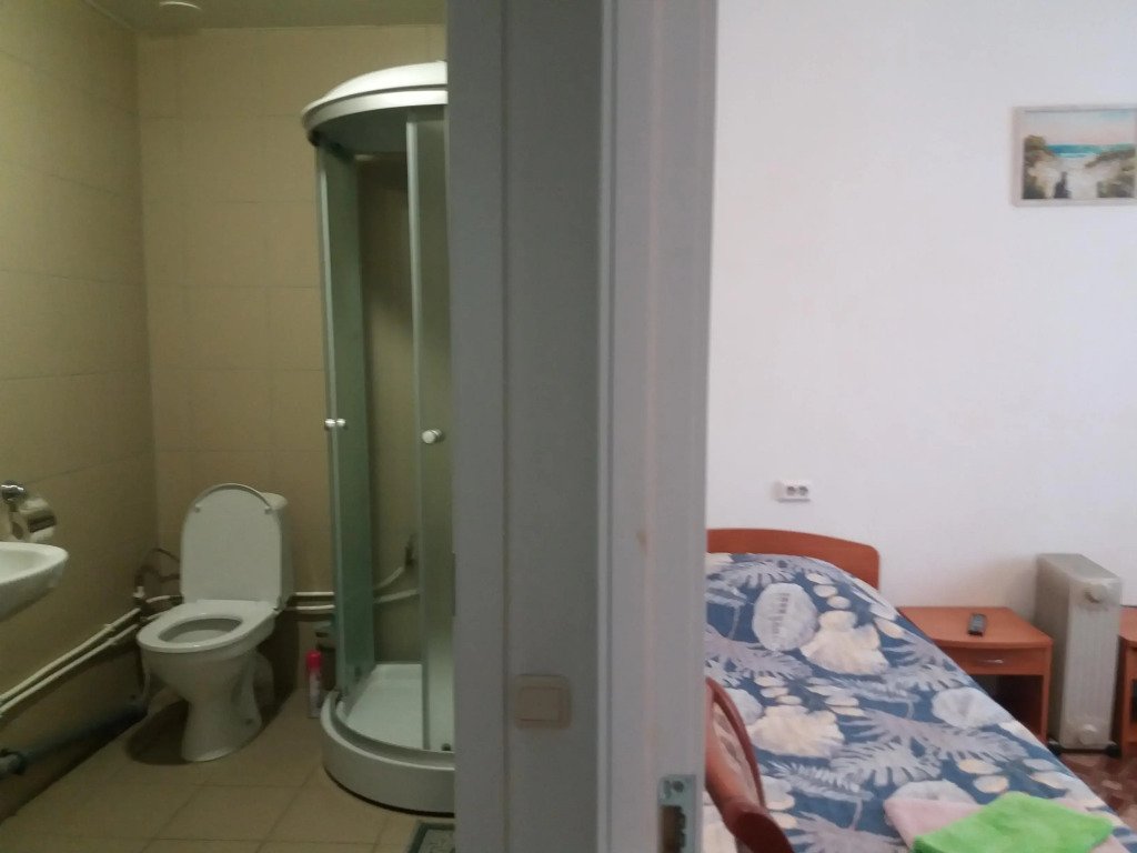 Душ на блок из двух номеров. В номере две односпальные кровати. Также в номере: телевизор, холодильник, чайник, DVD-проигрыватель.