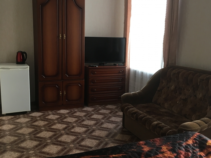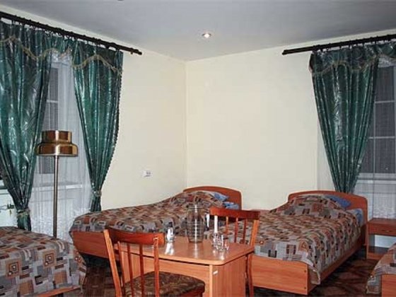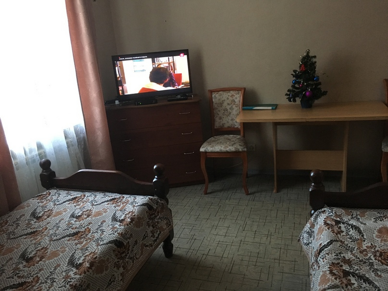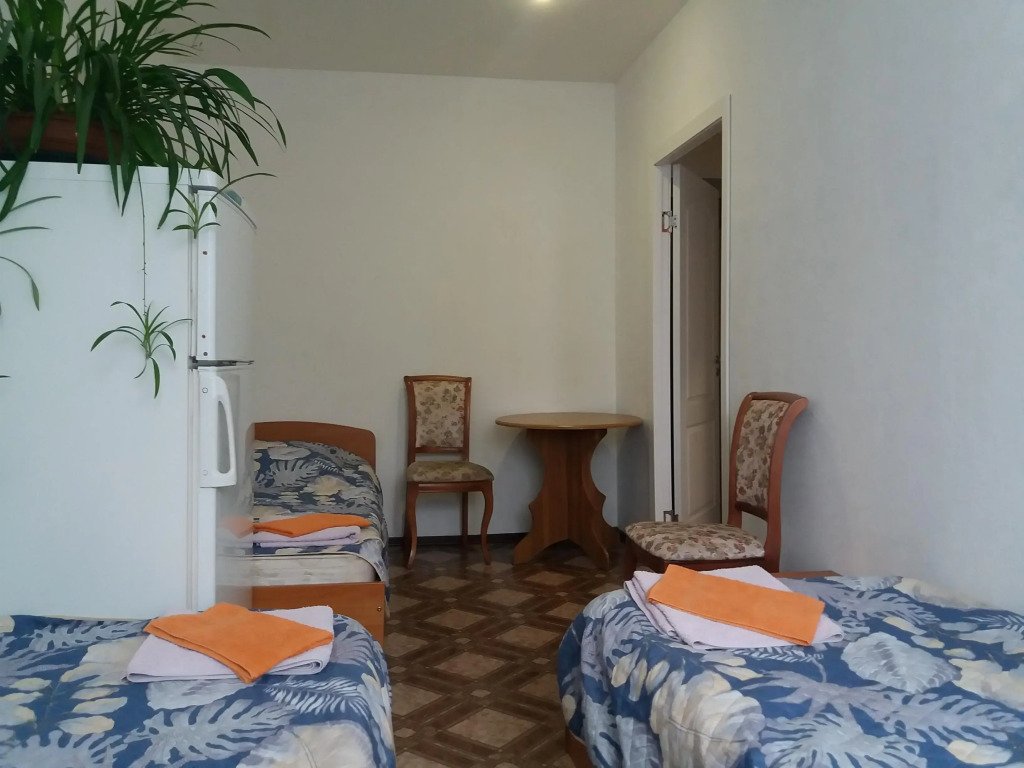 Номер категории «Семейный 2-х комнатный номер: 5 мест» — Двухкомнатный номер на 2 и 3 места с раздельными кроватями. В номере душ и туалет, электрочайник, холодильник, телевизор.