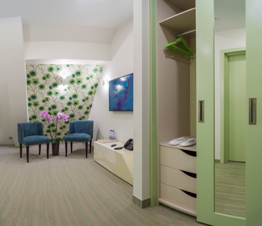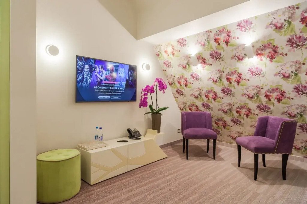 В номере вас будут ждать телевизор и халат. Оснащение зависит от выбранной категории номера.