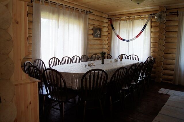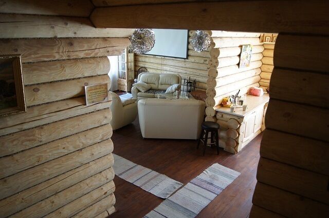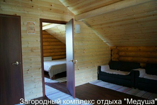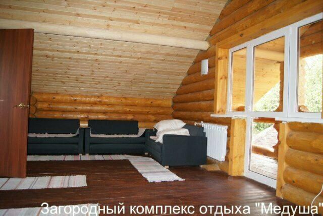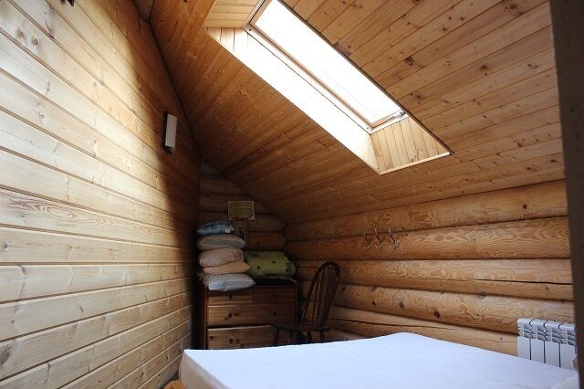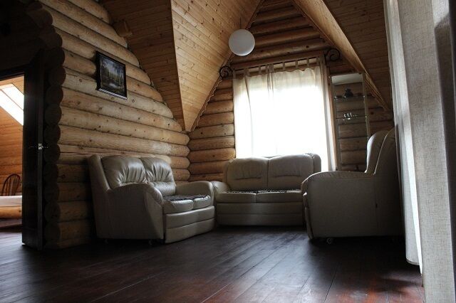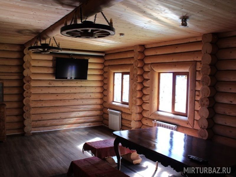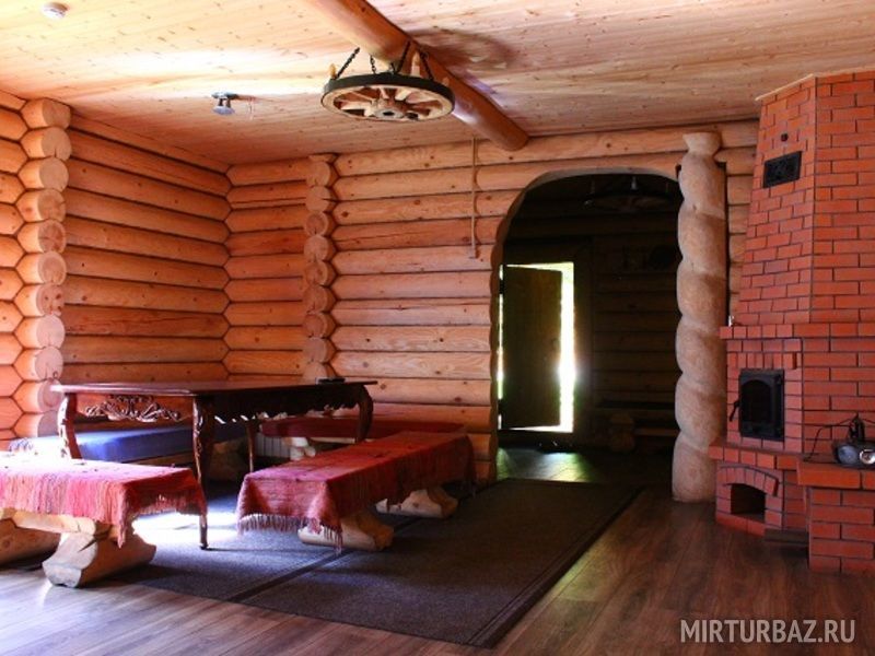 Комната отдыха с большой рубленной кроватью. В стоимость входит все банные принадлежности, веники, посуда, чай.Русская баня