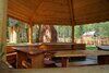 Возле гостевого дома расположилась просторная беседка и, словно вышедшая со страниц старинной сказки, печь, несколько модернизированная для комфортного приготовления блюд на вертеле, шампурах и в казане.