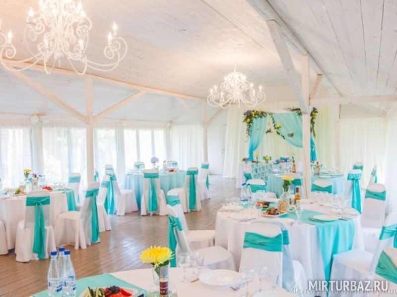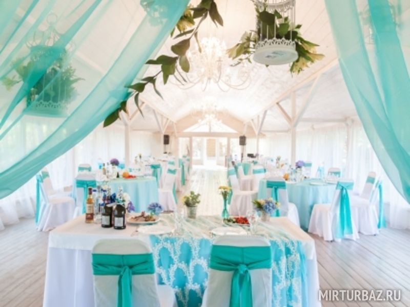 - Банкетный зал уже драпирован тканью - это позволит вам существенно сократить затраты на оформление торжества;
