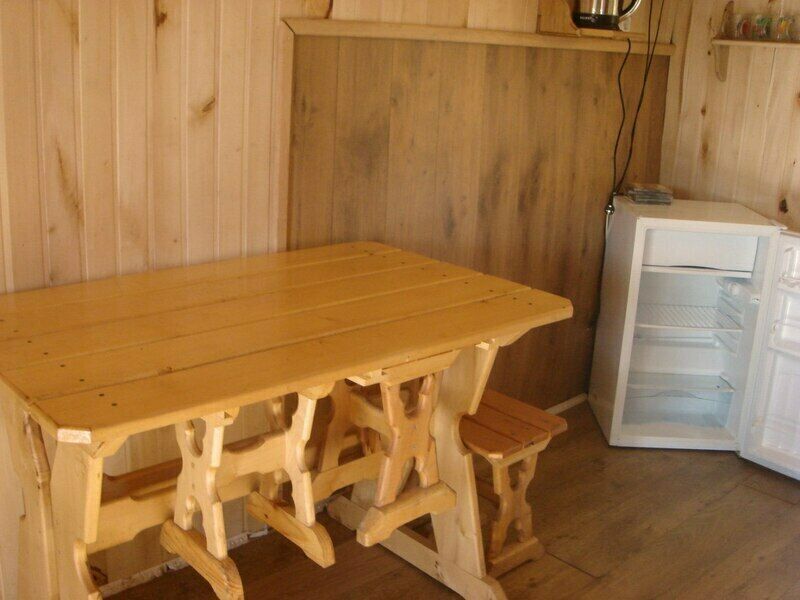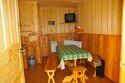В доме есть посуда, постельное белье, газ.плита, холодильник, телевизор. К домику прилагается беседка, входящая в стоимость, мангал и дрова. Туалет находится на улице.