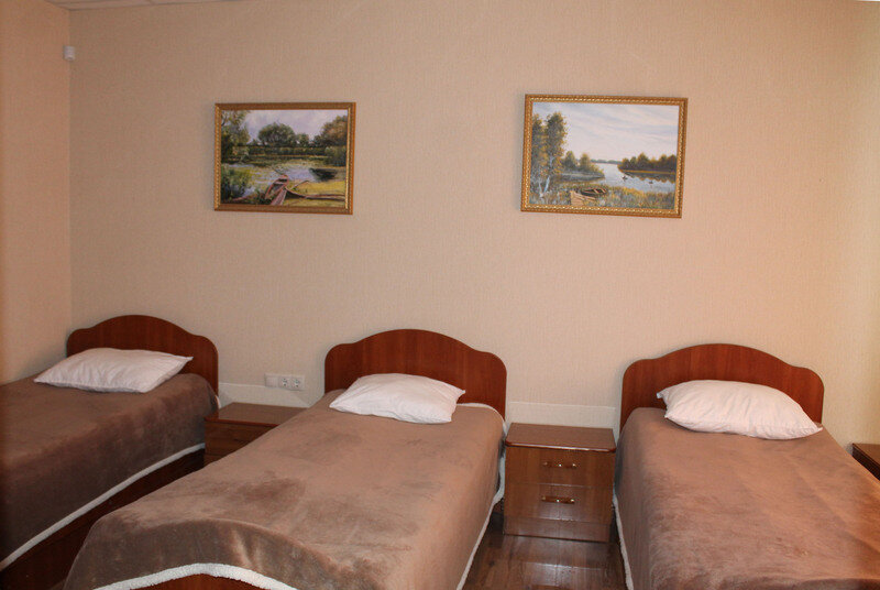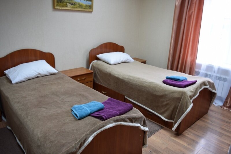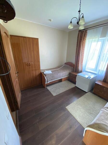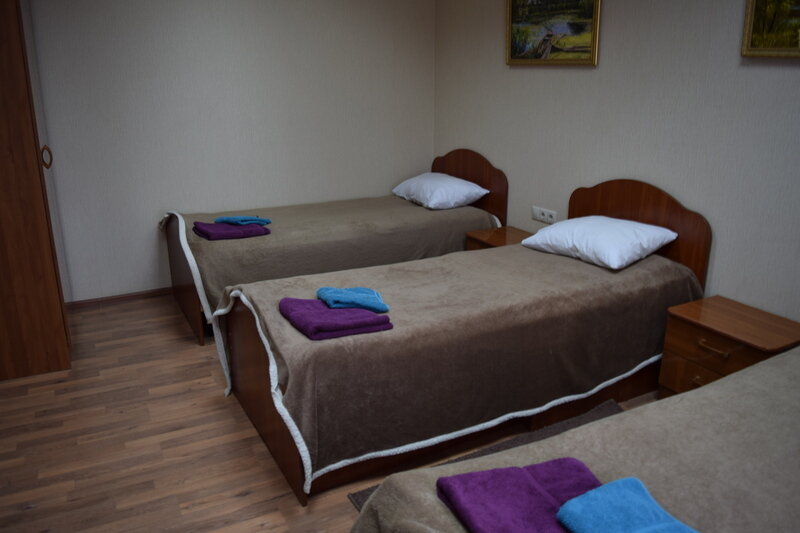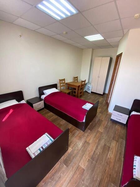 Каждый номер общей площадью 15 кв.м. Расположен в общем жилом блоке на первом этаже кирпичного здания.