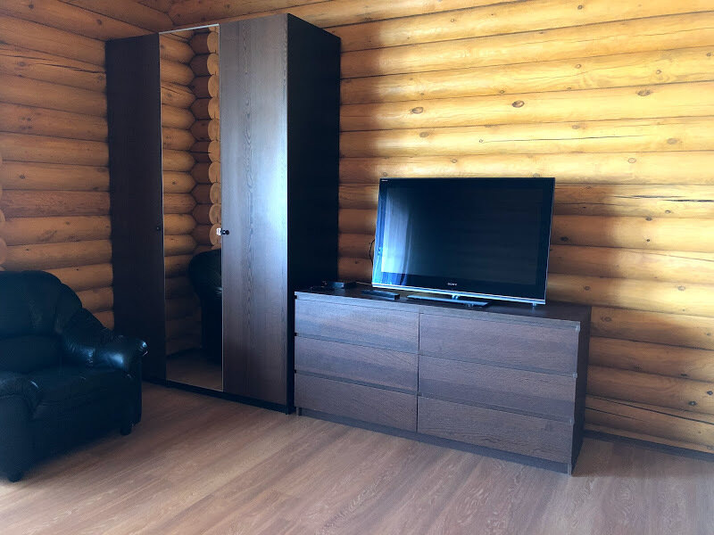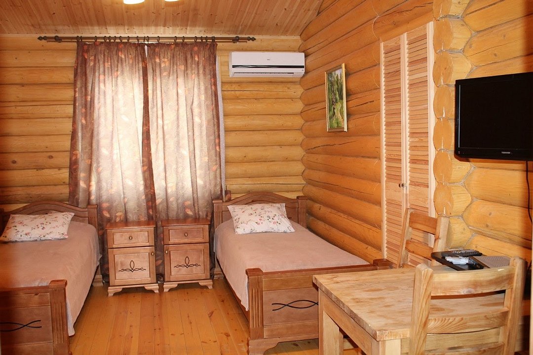 Номер класса «Бизнес». Каждый номер общей площадью 17 кв.м. Расположены на втором этаже гостиничного комплекса в срубе.