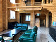 Просторная гостиная с панорамными окнами в два этажа создает впечатление эфирности. Отсутствие перекрытий в гостиной между первым и вторым этажами образуют единое пространство Sky Light. Дополняет уютный интерьер теплая и надежная фактура дерева.