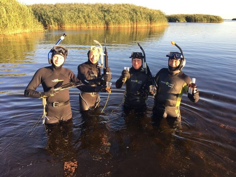 Подводная охота на рыбу на рыболовной базе Маяк.