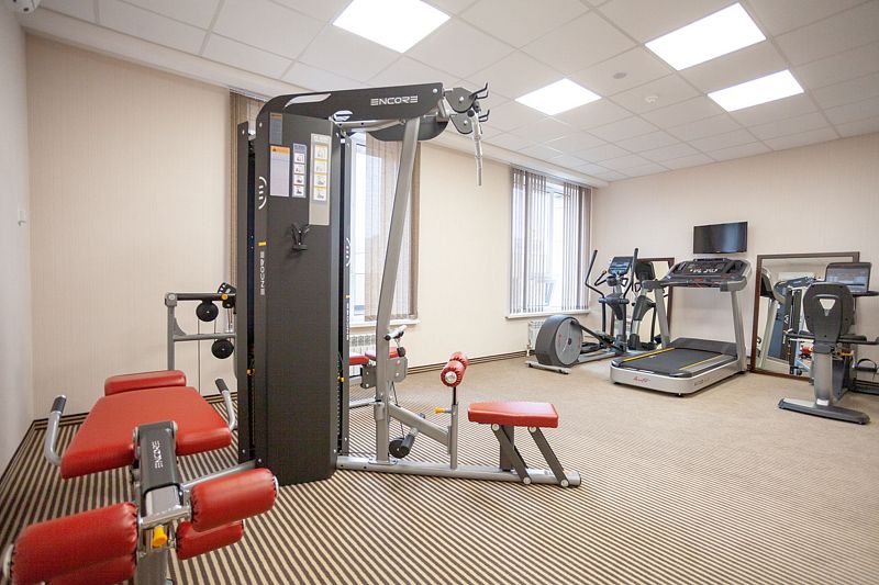 Тренажерный зал оснащен профессиональным оборудованием фирмы AeroFIT.