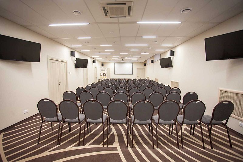 - полностью оборудованные три зала с возможностью комфортного размещения до 150 человек (60/60/30);