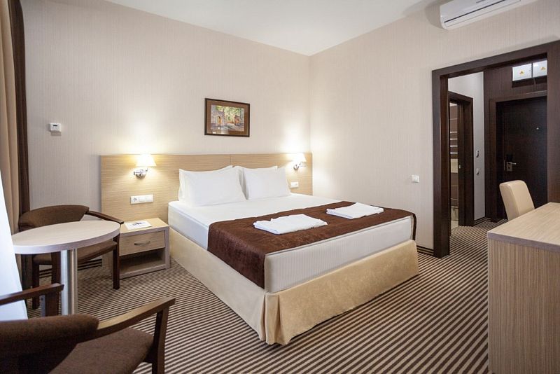 Для размещения гостей предлагаются комфортные эргономичные номера различных категорий на любой вкус и возможности – от Standard до Luxe. Номера оформлены в классическом стиле и предлагают все условия для полноценного отдыха: стильная мебель, собственные ванные комнаты, рабочие зоны, мини-бары и уголки для чаепития. Современное оборудование, включая кондиционеры и быстрый Wi-Fi, создает атмосферу комфорта, необходимую как для деловых поездок, так и для отдыха. Утром гостей ждет аппетитный завтрак в формате «шведский стол» с изысканными блюдами в BISCAFE.