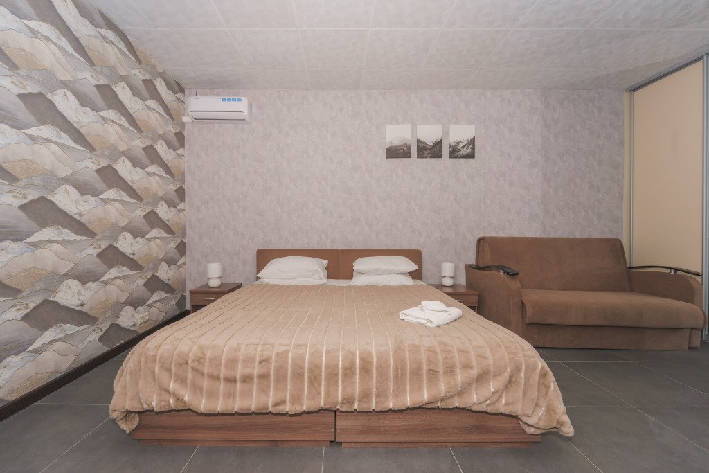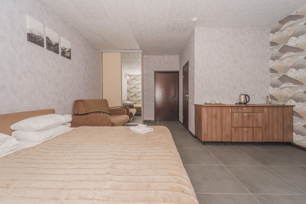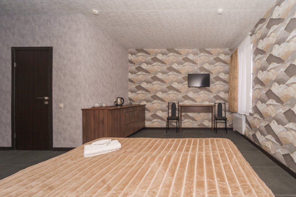 В каждом номере: спальное место, кондиционер, телевизор, Wi-Fi, банные принадлежности. Оснащение зависит от выбранной категории проживания.