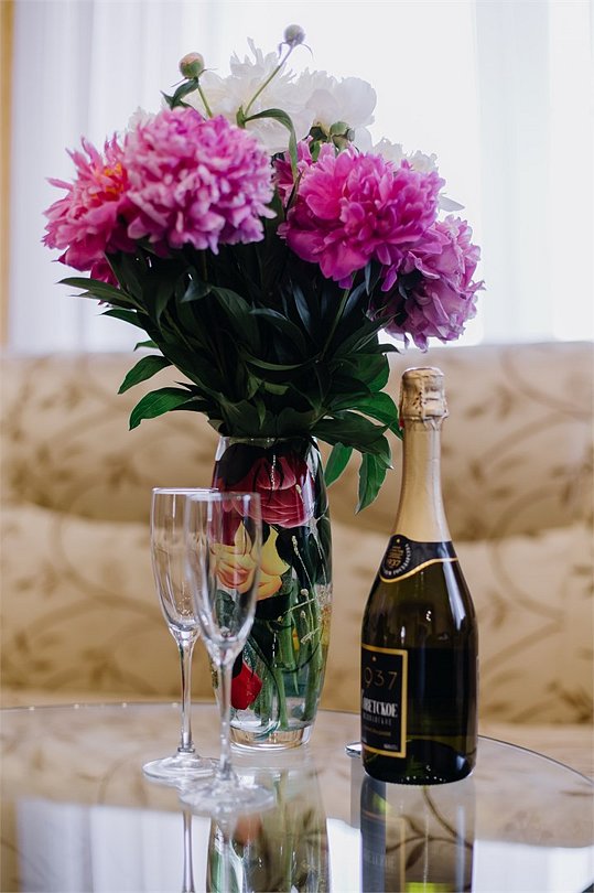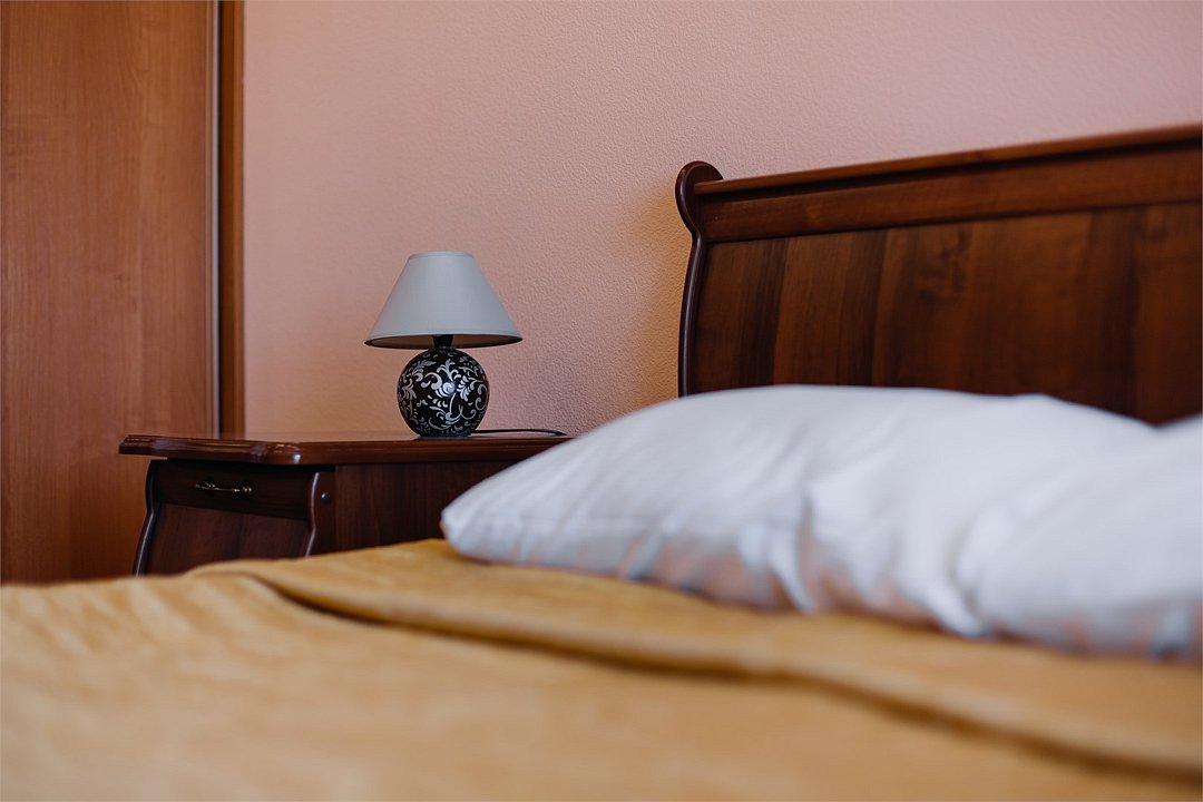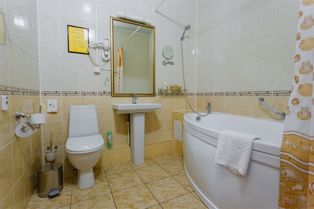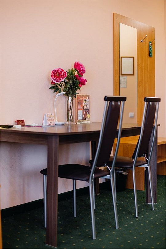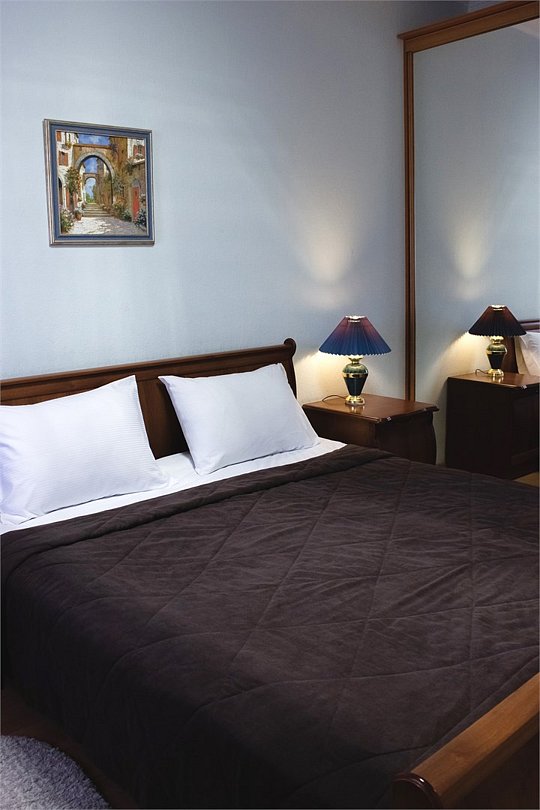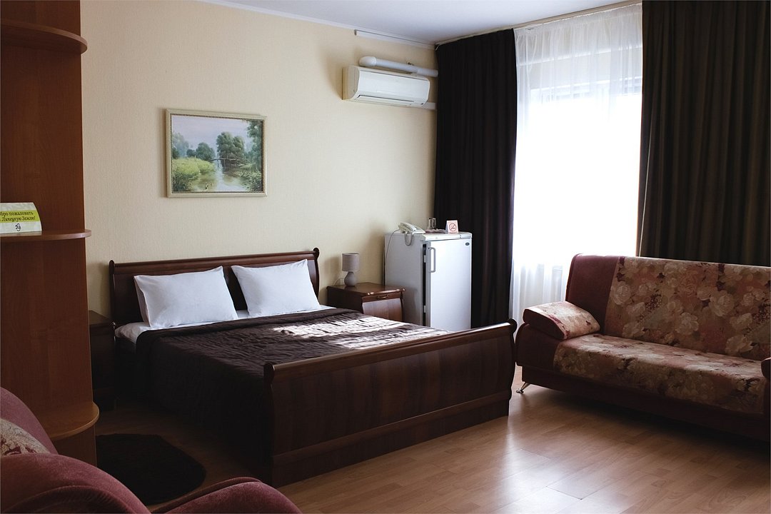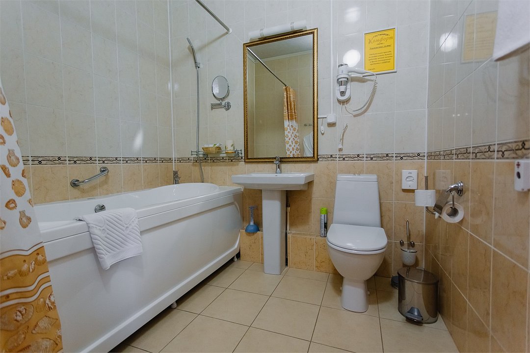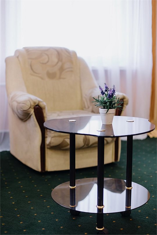 Уютный номер бизнес класса, площадью 31 кв.м. для размещения одного, двух или трех человек. Гостями такого номера могут быть молодожены, а также пары, желающие отметить годовщину свадьбы, специально для Вас мы создадим в номере уютную атмосферу для двоих! В комнате одна большая кровать, прикроватные тумбочки, чайный столик, диван с креслом, телефон, телевизор, шкаф-купе. Оставайтесь всегда на связи, пользуясь Wi—Fi, работайте с удовольствием на удобном и просторном рабочем месте в вашем номере. Дополнительный комфорт вашему проживанию придаст индивидуальная система кондиционирования, просторная ванная комната с зеркалом, феном, ванной и необходимыми косметическими принадлежностями.Услуги и удобства