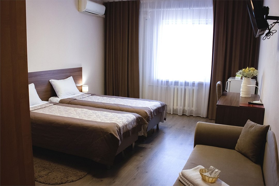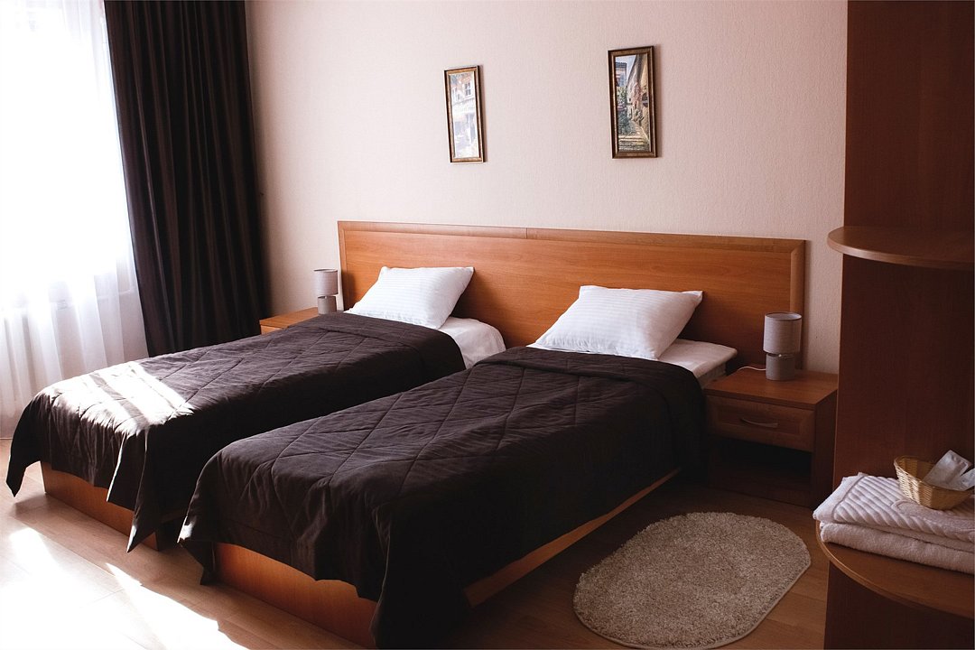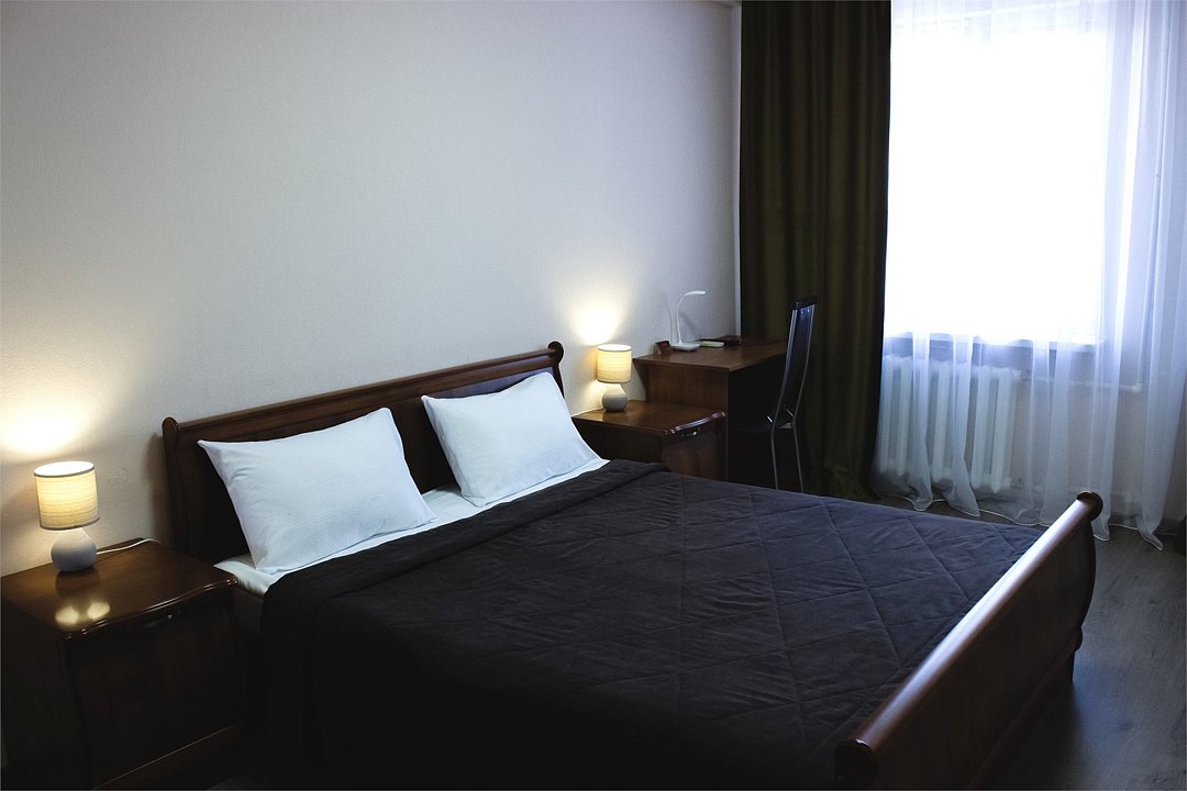 Просторный номер с прекрасными видами на город и парк. В стандартном номере мы предлагаем несколько вариантов кроватей, выберите подходящий именно для Вас вариант. Также площадь номера ( до 23 кв.м.) позволяет легко разместить троих гостей (установка дополнительной кровати в номер). Оставайтесь всегда на связи, пользуясь Wi—Fi, работайте с удовольствием на удобном и просторном рабочем месте в вашем номере. Дополнительный комфорт вашему проживанию придаст индивидуальная система кондиционирования, ванная комната с зеркалом, феном, просторной ванной и необходимыми косметическими принадлежностями.Услуги и удобства
