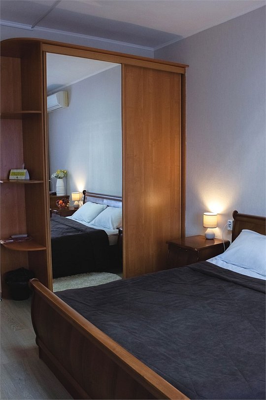два телевизора, кабельное телевидение, Wi-Fi, интернет, телефон, холодильник, кондиционер, светильник, фен, ванная комната, санузел, водонагреватель, тапочки, косметические средства, две двуспальные кровати, гладильная доска, тумбы, шкаф для одежды, вешалки, журнальный столик, письменный стол, обеденный стол, багажная тумба, зеркало, ковер, две комнаты, мини-бар, набор посуды, обслуживание номеров, информационная карта, меню, стиральная машина, чайник, косметическое зеркало, питьевая вода, обеденная зона, гостиная зона, отопление, душ, вид на город, кулер на этаже, плиточное покрытие, кресло, центральное кондиционирование, две спальни, высокие потолки, стаканы, кухонная утварь, кофейный столик, стул, тумба, туалет, сплит-система, цифровое тв, внутренний телефон, телевизор с плоским экраном, шкаф-купе, номер для некурящих, рабочий стол, средства индивидуальной защиты, можно с питомцамиВ номере