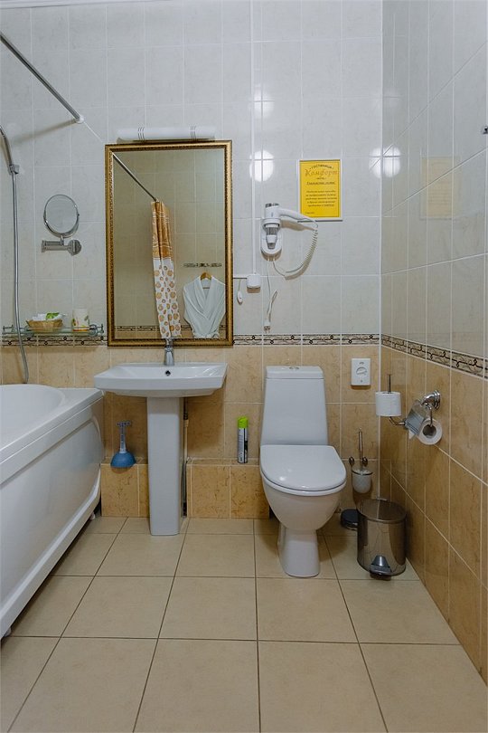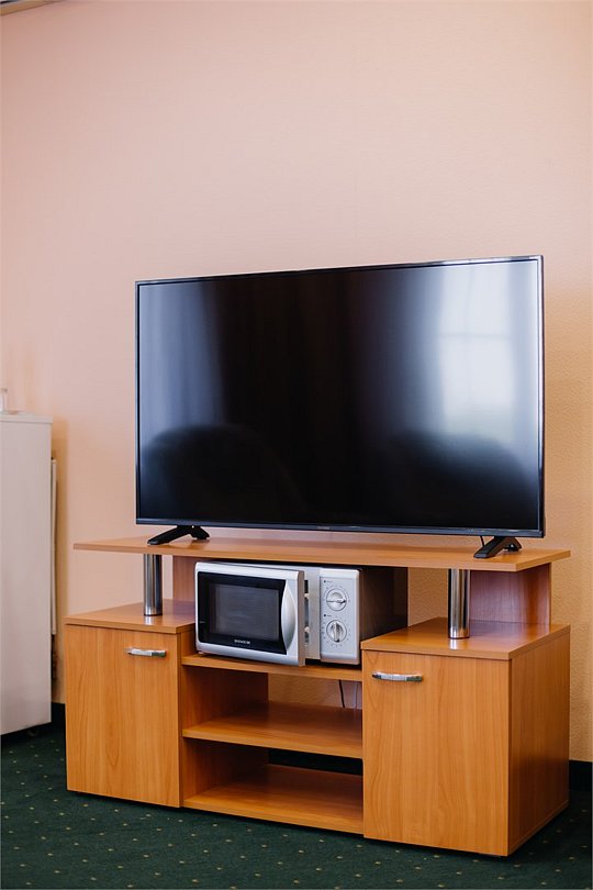 Wi-Fi, телефон, холодильник, система климат-контроля, фен, микроволновая печь, ванная комната, ванна, санузел, халаты, банные полотенца, тапочки, тумбы, шкаф для одежды, журнальный столик, письменный стол, зеркало, чайник, мягкая мебель, туалетные средства, цифровое тв, телевизор с плоским экраном, можно с питомцамиВ номере