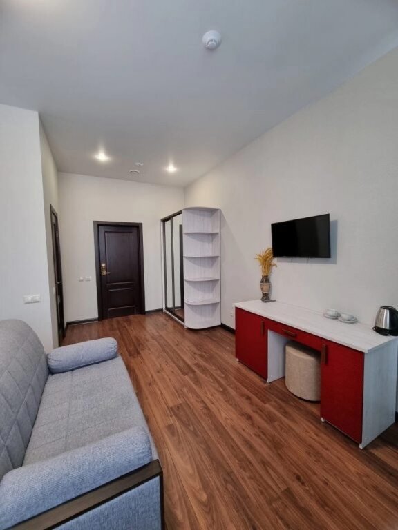 В номере гостей ждут телевизор и халат. Оснащение зависит от выбранной категории номера.