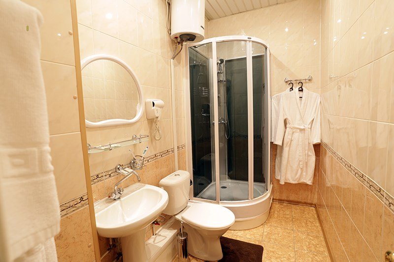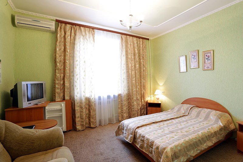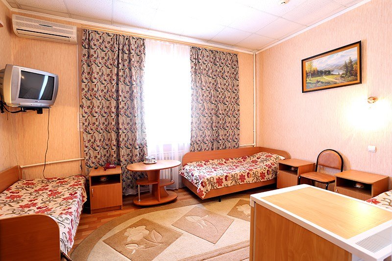 Уютный, комфортабельный номер. В распоряжении гостей: холодильник, телевизор, бесплатный WI-FI, кондиционер, посуда, комплект полотенец из 3х шт. для каждого, индивидуальные средства гигиены, фен. Санузел оборудован душевой кабиной, водонагревателем, что обеспечивает бесперебойное наличие горячей воды даже в период сезонного отключения. Номер оборудован противопожарной системой, что делает пребывание в нём наиболее безопасным. Из окон номеров открывается прекрасный вид на центральную часть нашего города. В стоимость проживания включен завтрак.Услуги и удобства