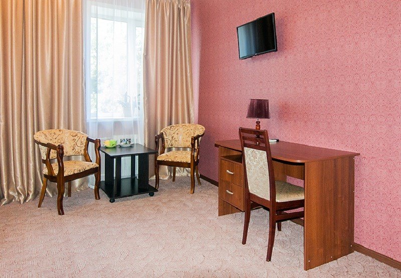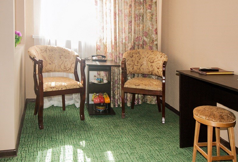 Четырехэтажное здание гостиницы находится на пересечении улиц Ворошилова и Советской. Гостей ожидают номера Стандарт, Полулюкс и двухкомнатные Люкс. В каждом имеется санузел с душем, кондиционер, телевизор и холодильник. В номерах Люкс предусмотрена индивидуальная система обогрева.