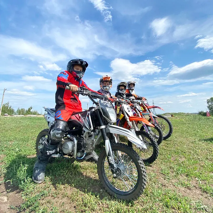 Прокат и обучение езде на кроссовых мотоциклах на специальной трассе с разными видами сложности.